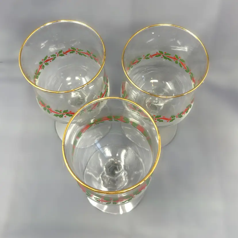 Unlike mass-market holiday glassware, these vintage goblets offer superior weight, sparkle, and timeless design. Excellent vintage condition: crystal-clear, no chips or cracks, vivid paint, and fully intact gold rims.
