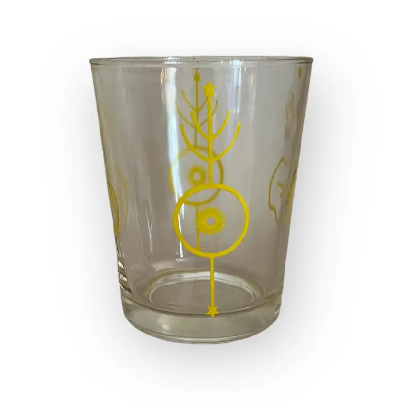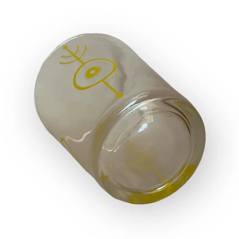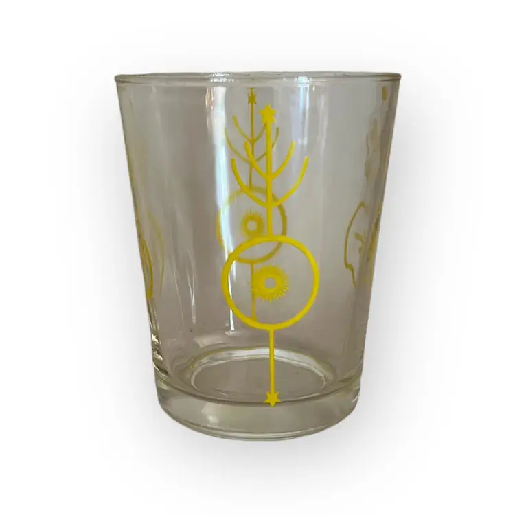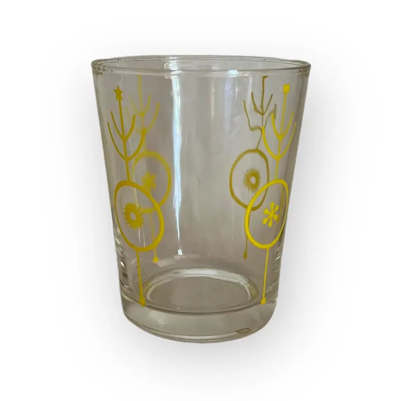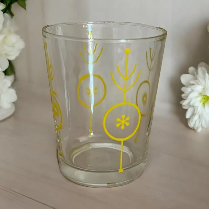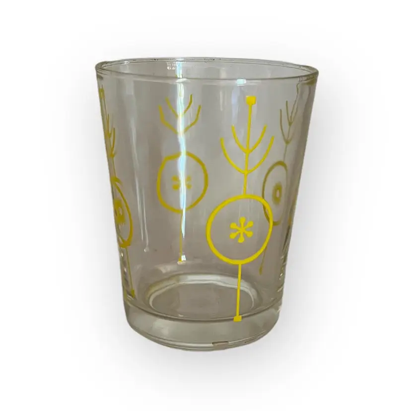 Vintage drinking glass by Libbey Nordic pattern in yellow. Single glass 4.5" tall .Excellent condition