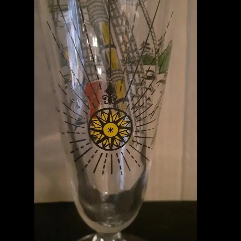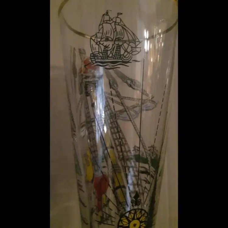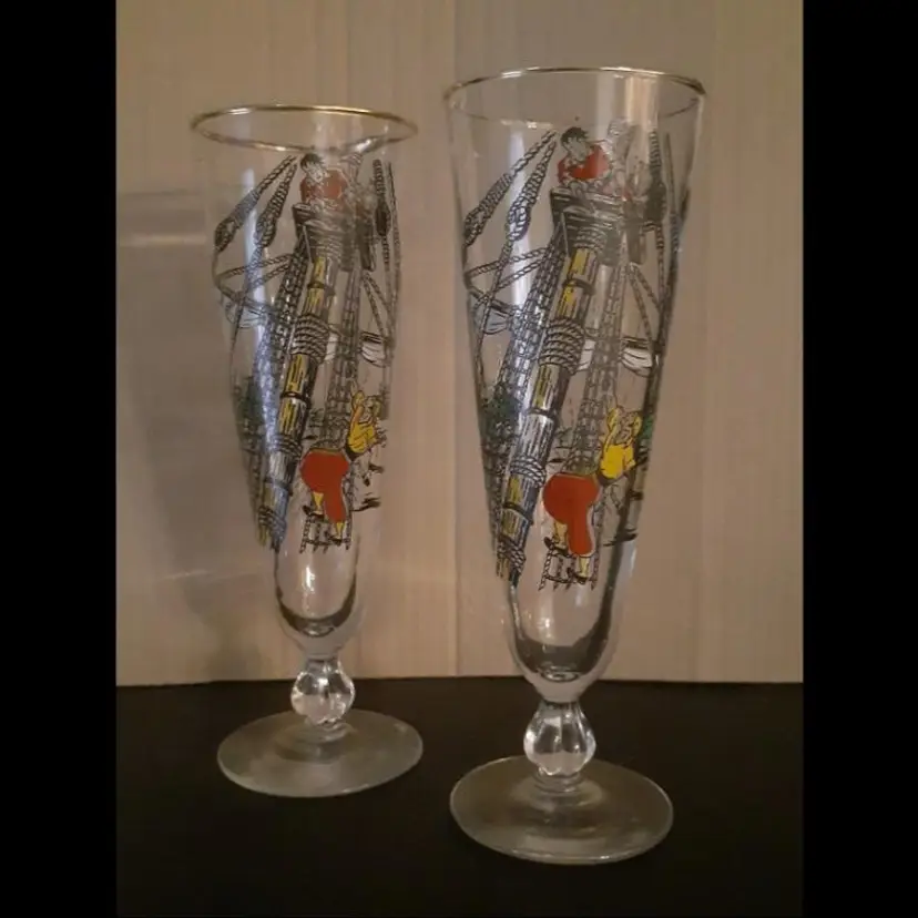 2 Vintage Libbey Glass Treasure Island 10oz Pilsner Beer 1950’s Pirate Stemware.