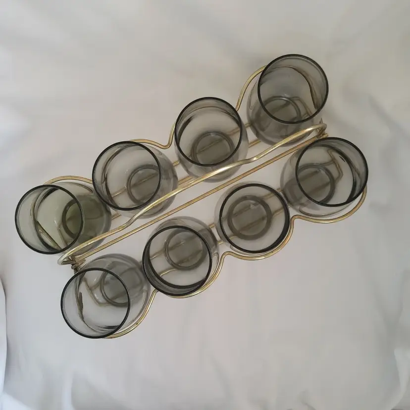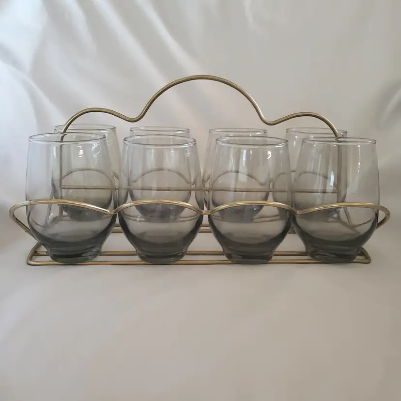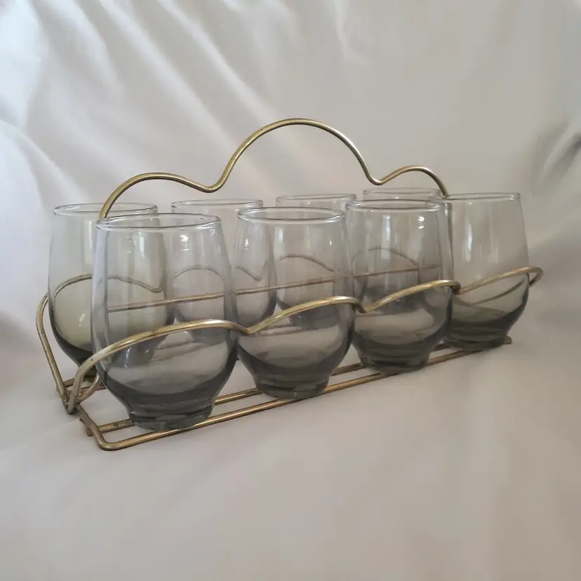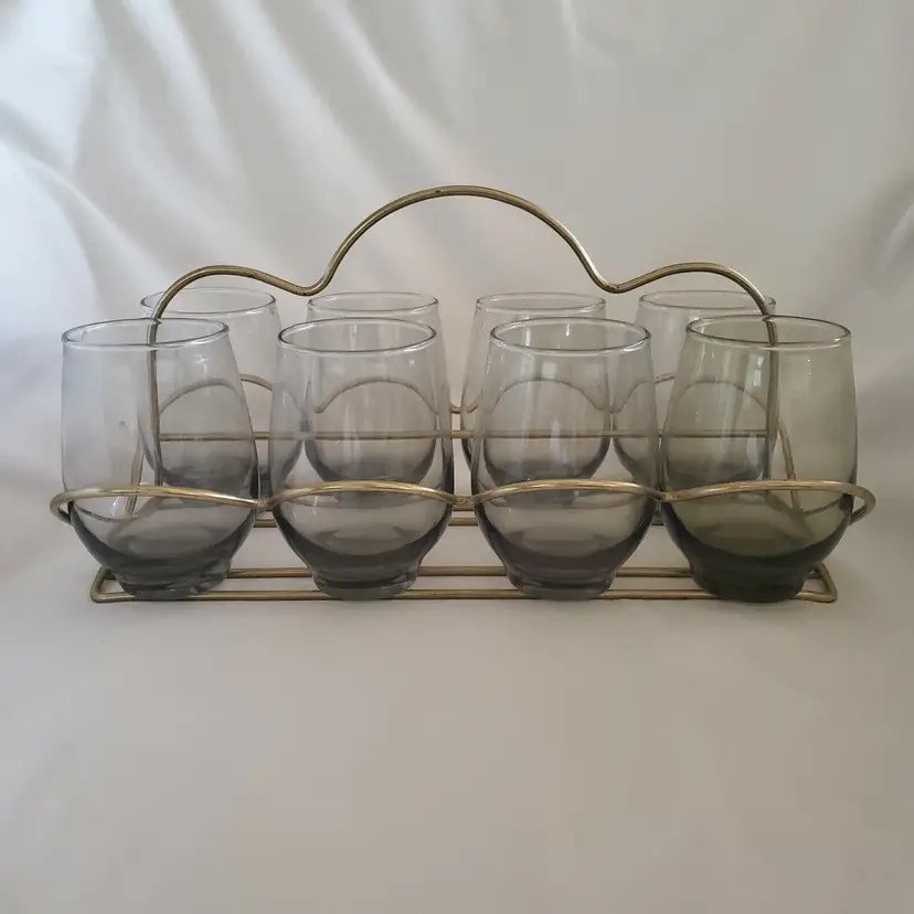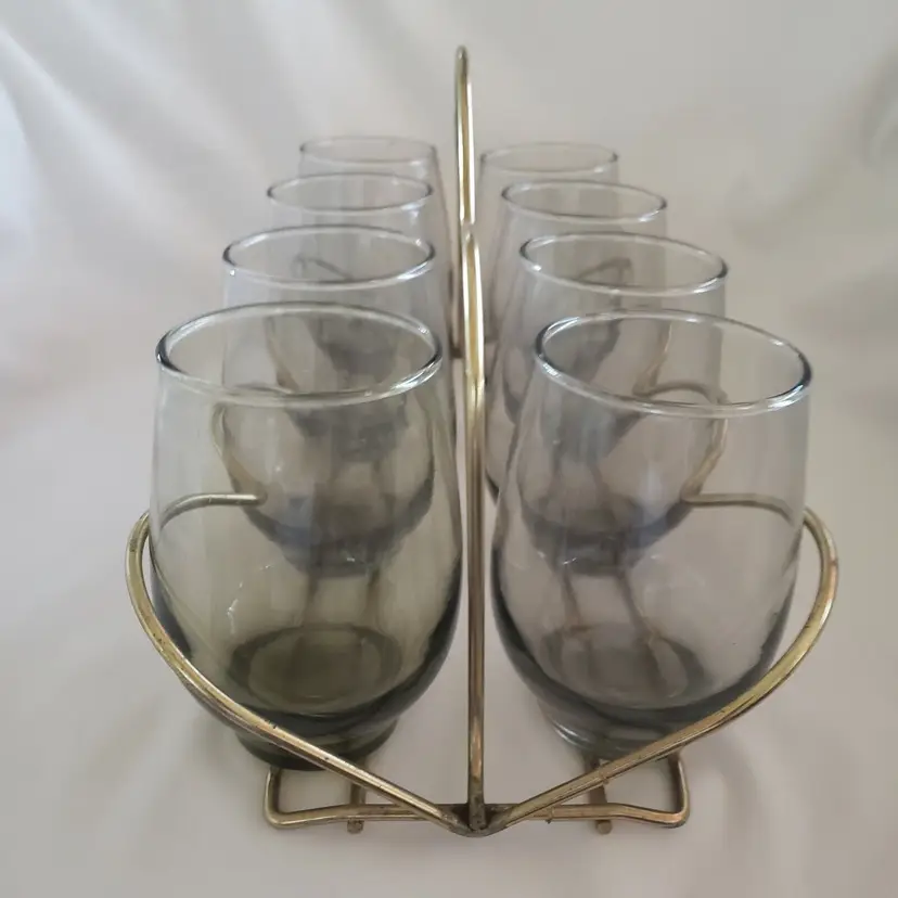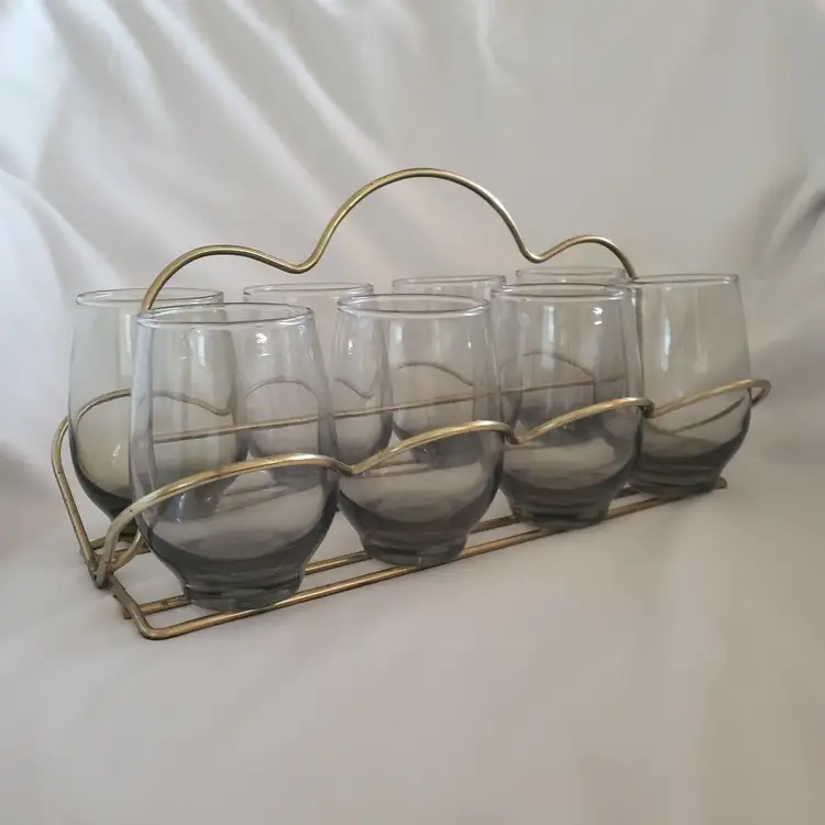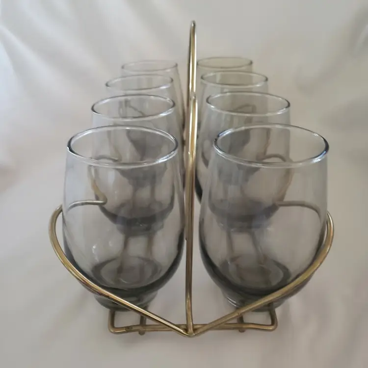 Number of Items in Set: Eight-Piece Color: Gray Item Diameter: See Description. Material: Glass Vintage: Yes Brand: Libbey Type: Tumbler Glass Original/Licensed Reproduction: Original Item Height: See Description. Style: Mid-Century Modern Country/Region of Manufacture: Canada Item Weight: See Description. Handmade: No