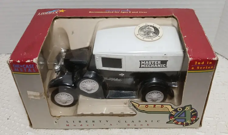 Liberty classic die cast Ford model a true value master mechanic bank #2 series. Box shows a little age.