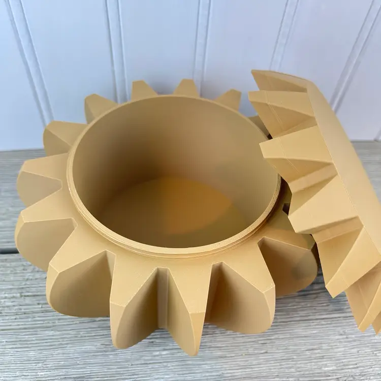 The holder is 3D printed using PLA plastic filament. 3D printing is done by printing layer upon layer of filament to build up and create the print.