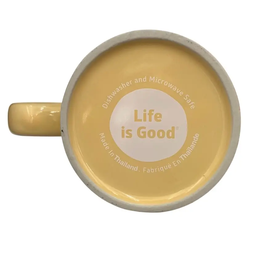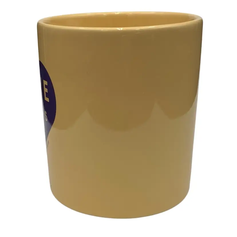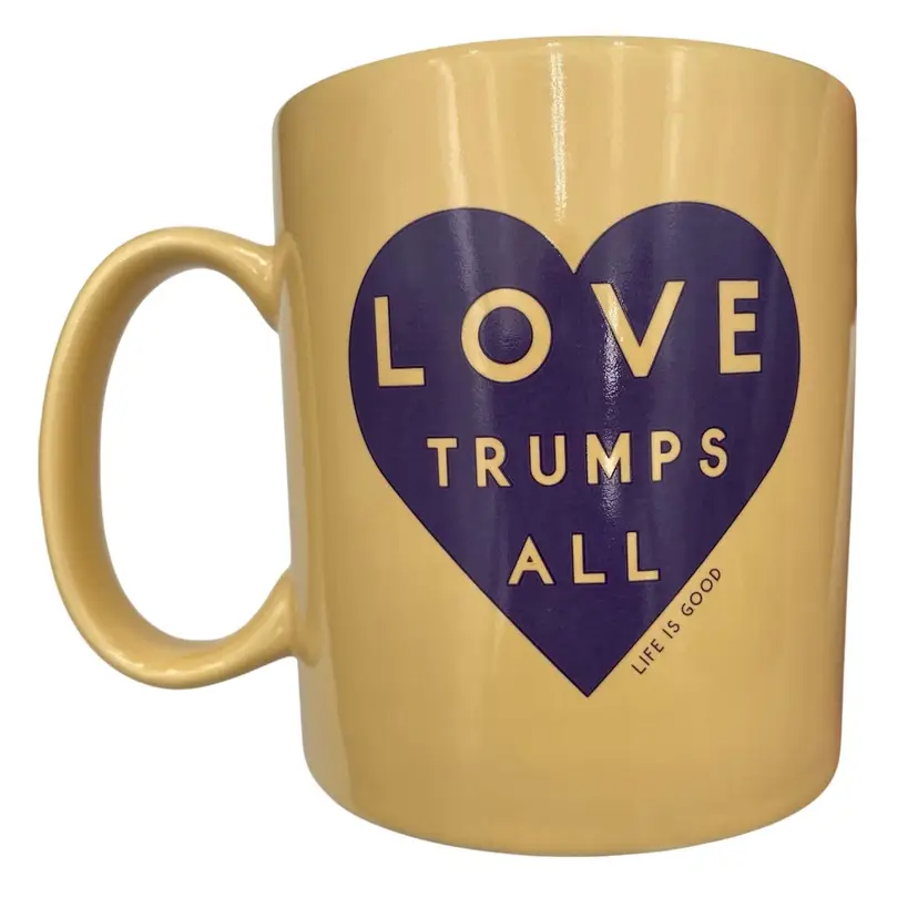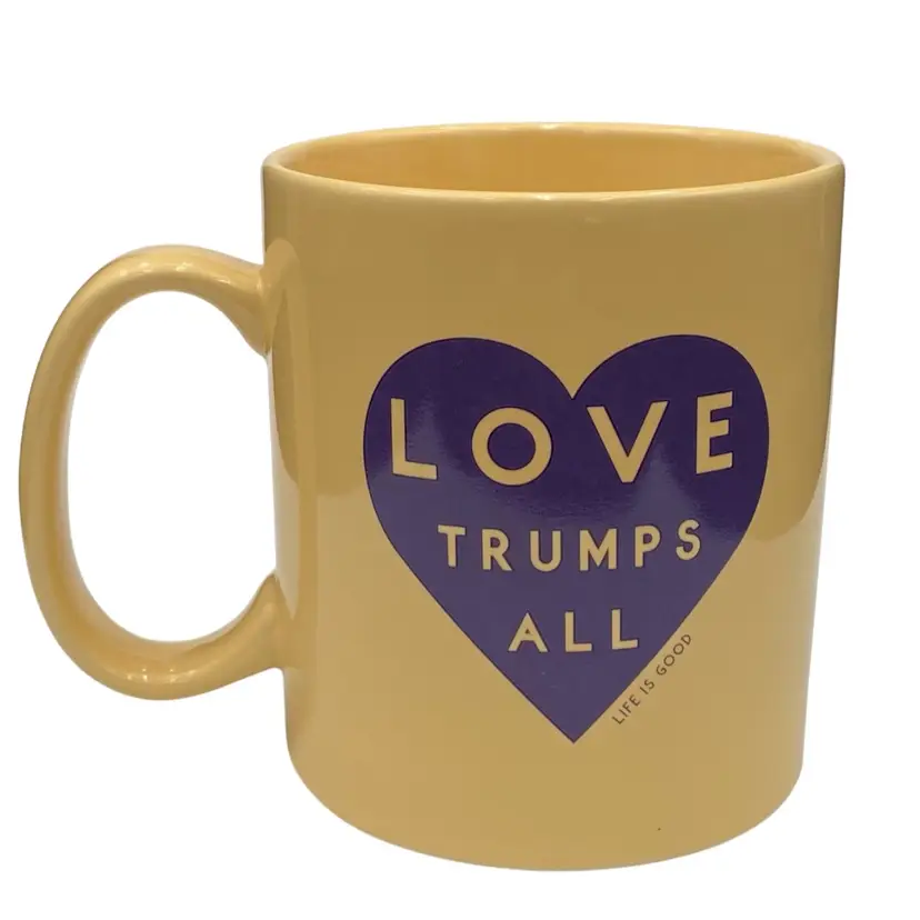 Life Is Good Coffee/Tea Mug, "Love Trumps All", Yellow with Purple Heart, 16 oz