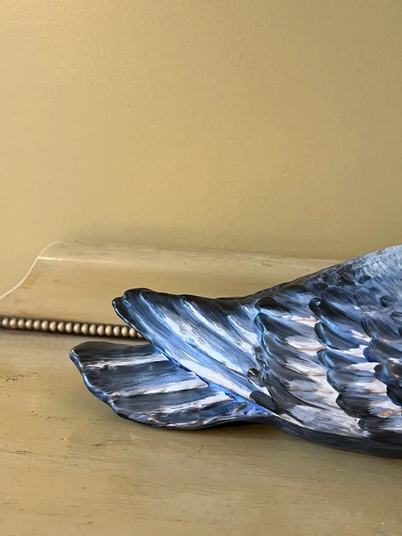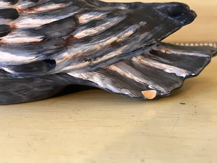 Life size and hand painted Signed 10” length 6.5” tall There is a chip on the backside on the wing