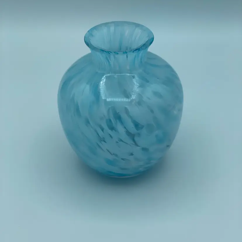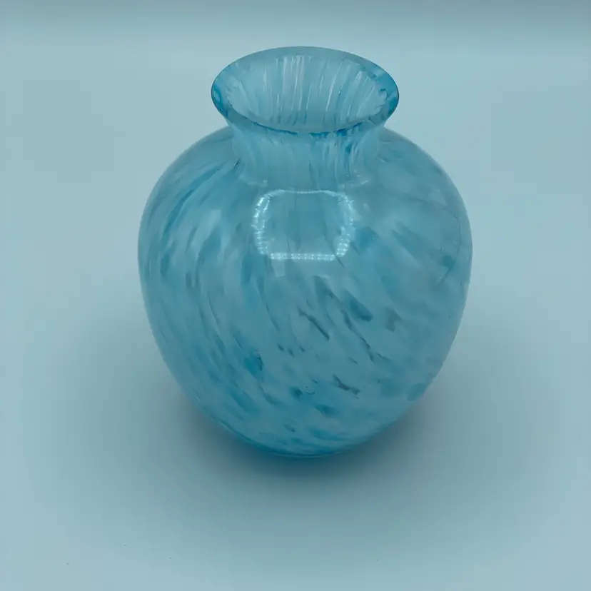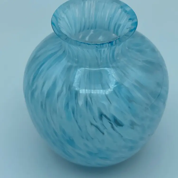 Light Blue Swirl Art Glass Bud Vase. Nice Weight. No Chips/Cracks. 3 3/4" Tall