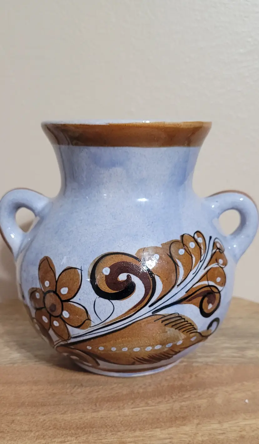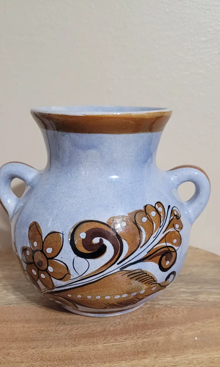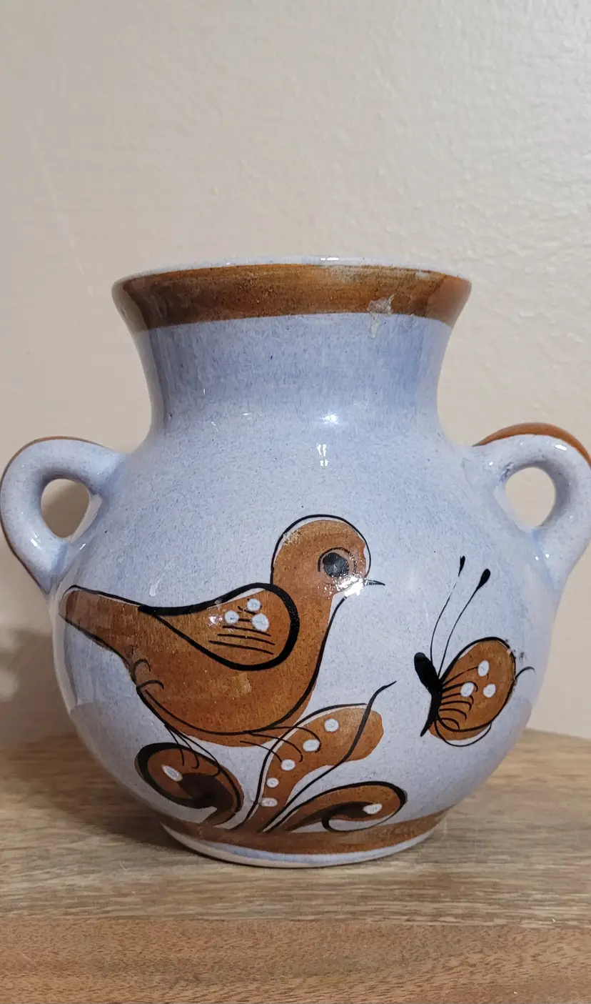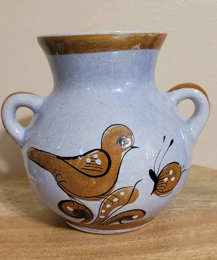 Vase with Brown Bird and Designs 6" x 6"