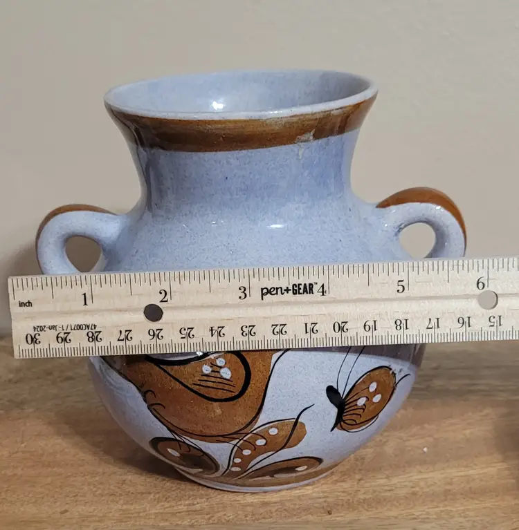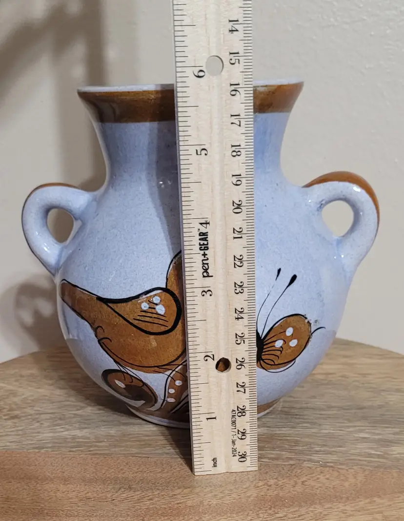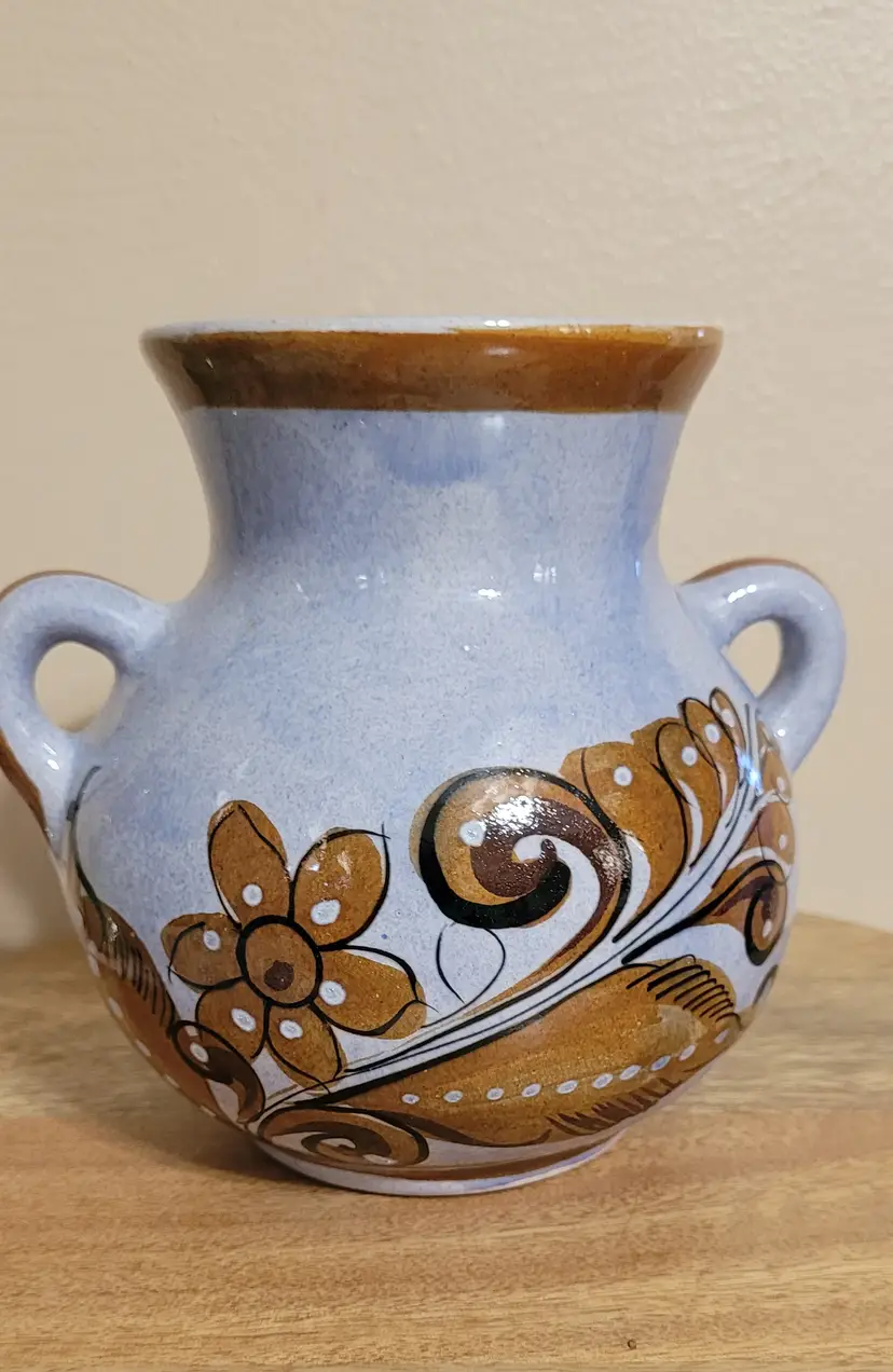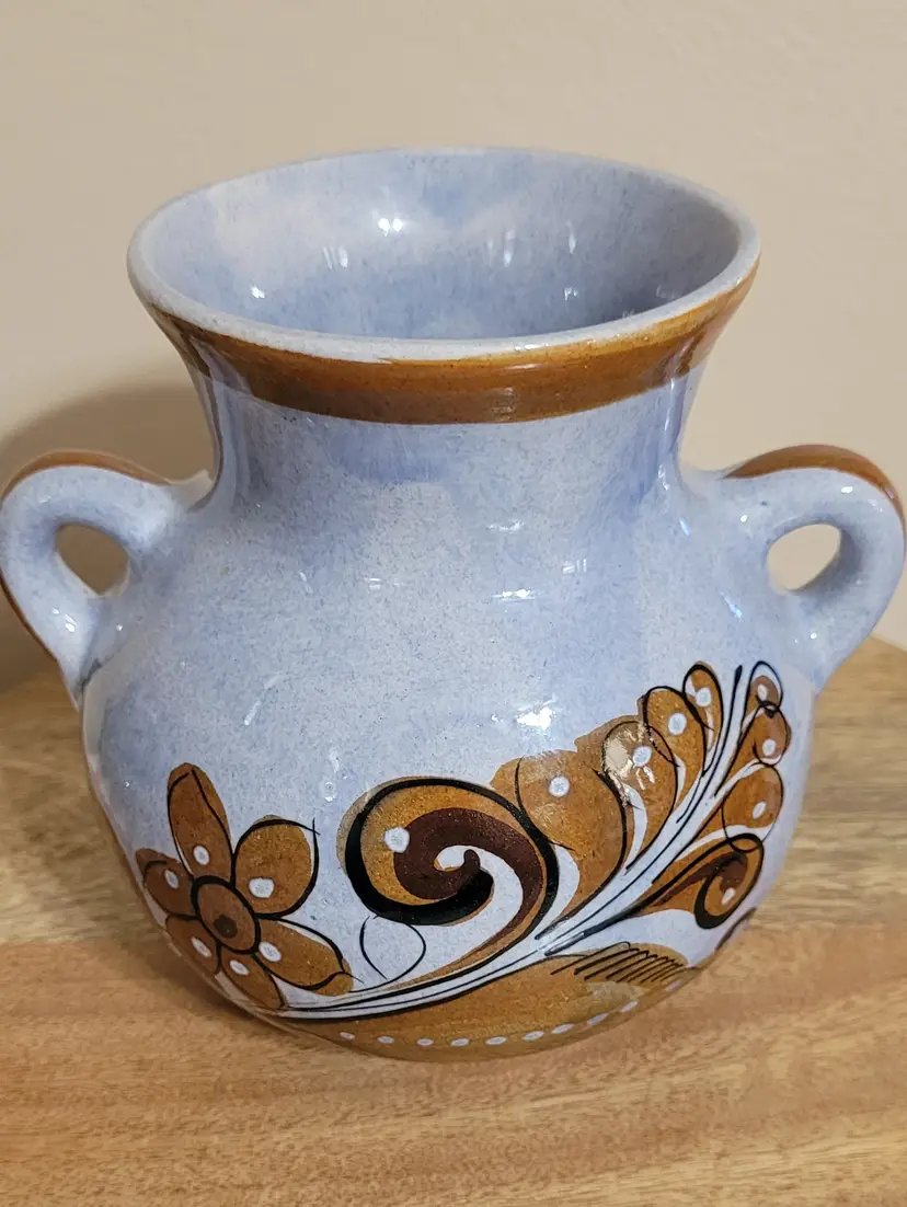 Vase with Brown Bird and Designs 6" x 6"