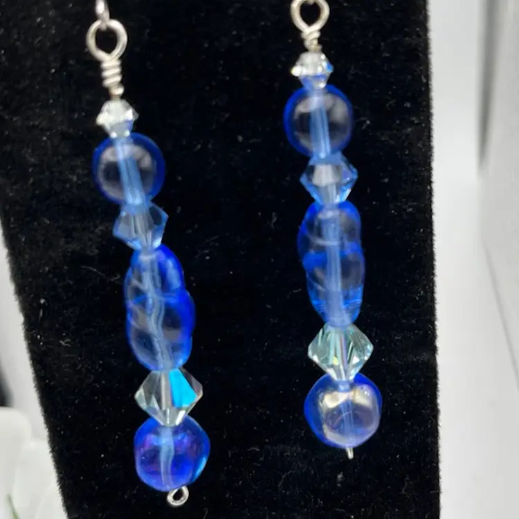 Old stock vintage light blue pressed glass beaded earrings.These beads were vintage and are a pale light blue. Very cool dangling earrings. Also embellished with Czech crystal bicones. Stunning set