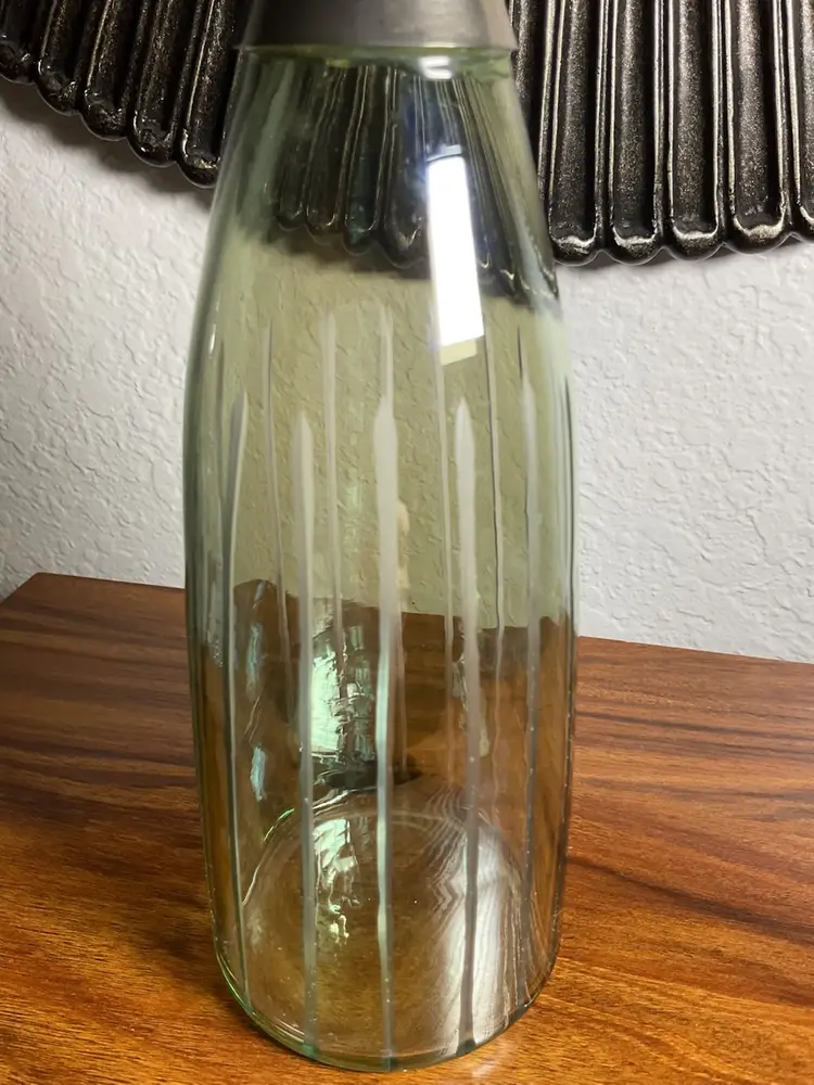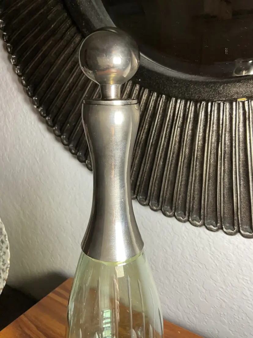 Glass Decanter Metal Collar and Stopper 13 1/2" Tall