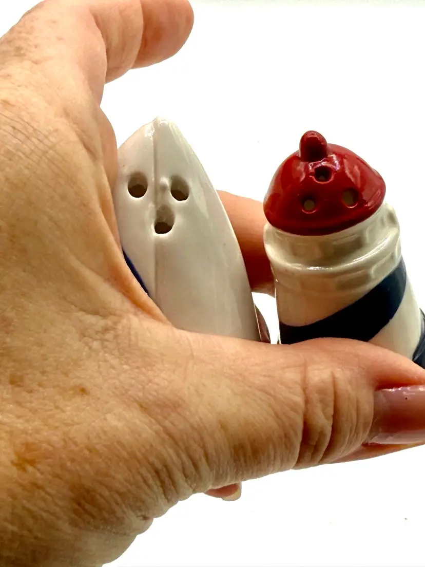 Lighthouse And Sailboat Salt And Pepper Shakers. 2”
