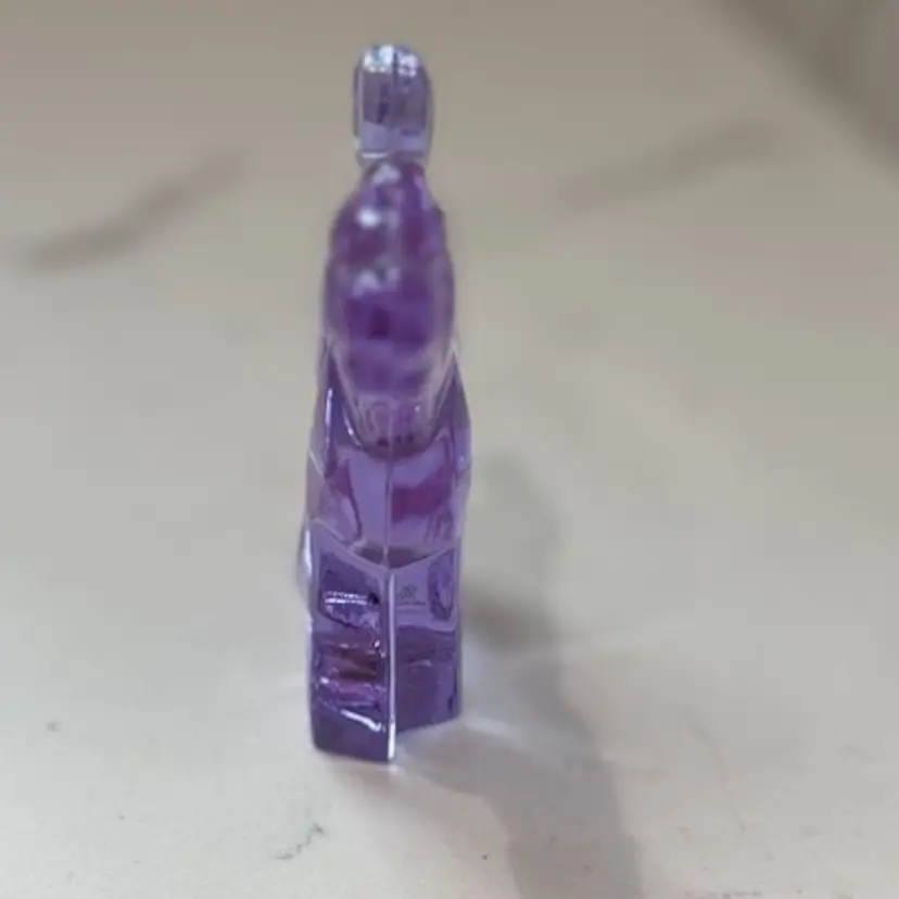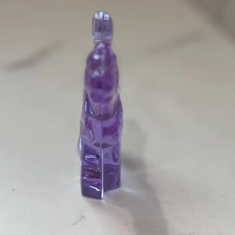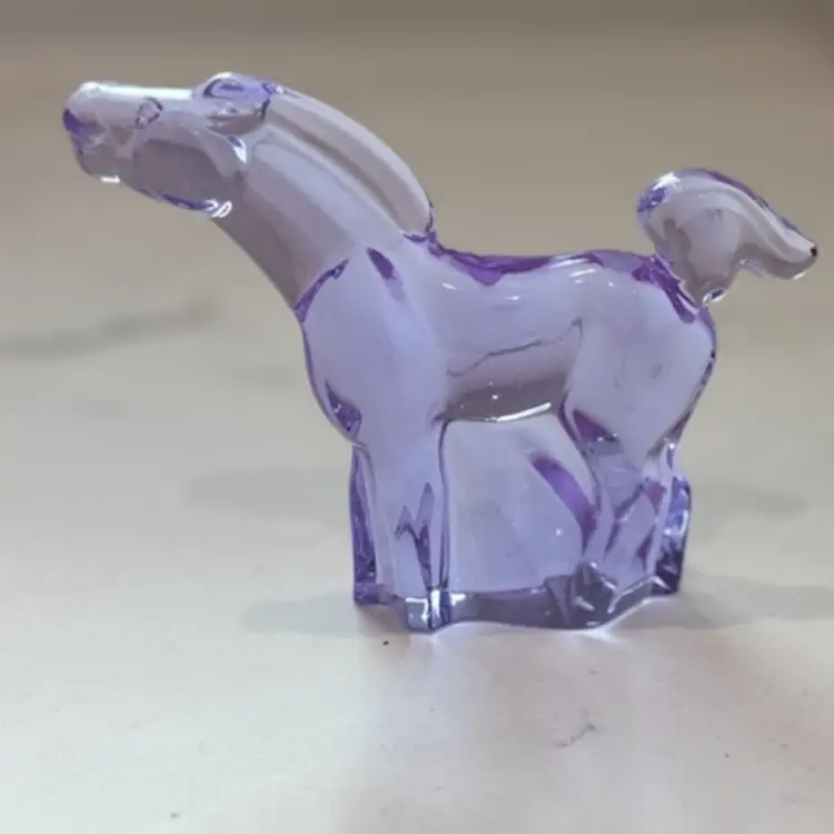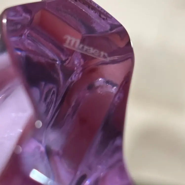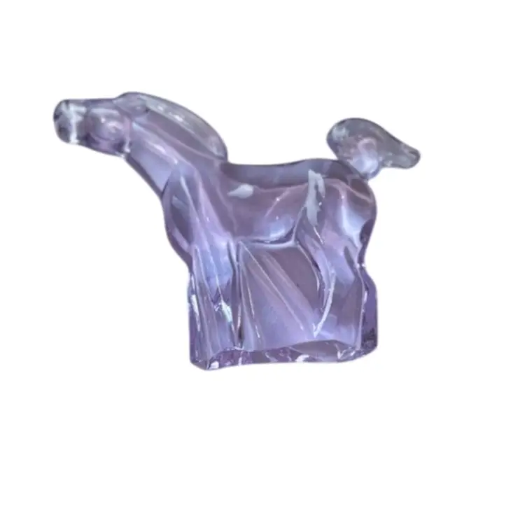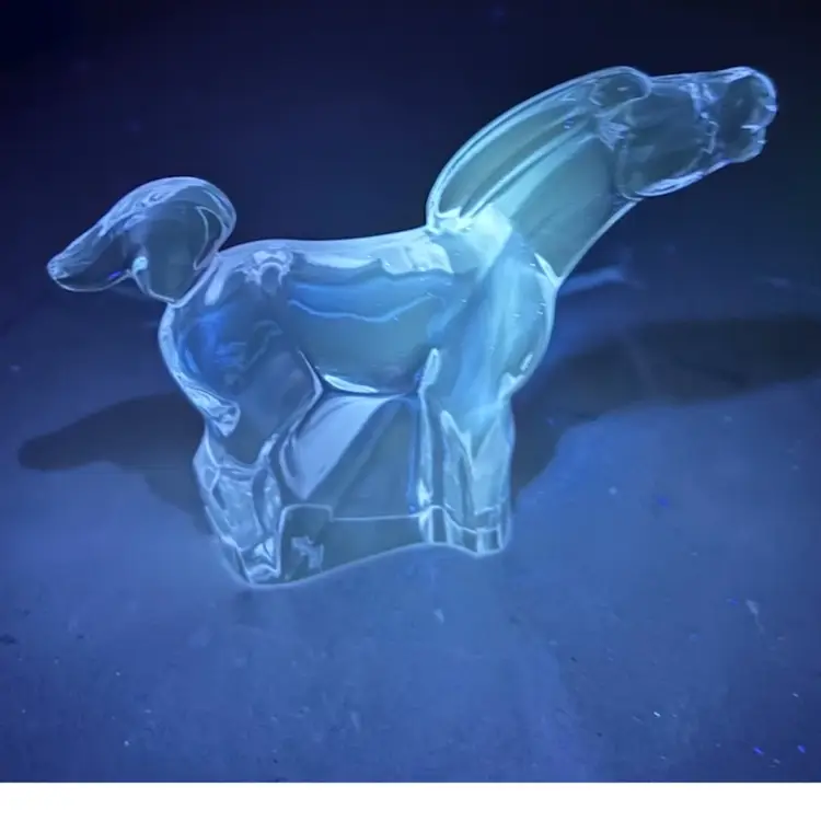 Lilac /lavender changes color to white under uv light. Might change to other colors under different lights with different wavelengths. 3.5” tall x 4.5” long. No chips cracks or repairs. Signed Moser.