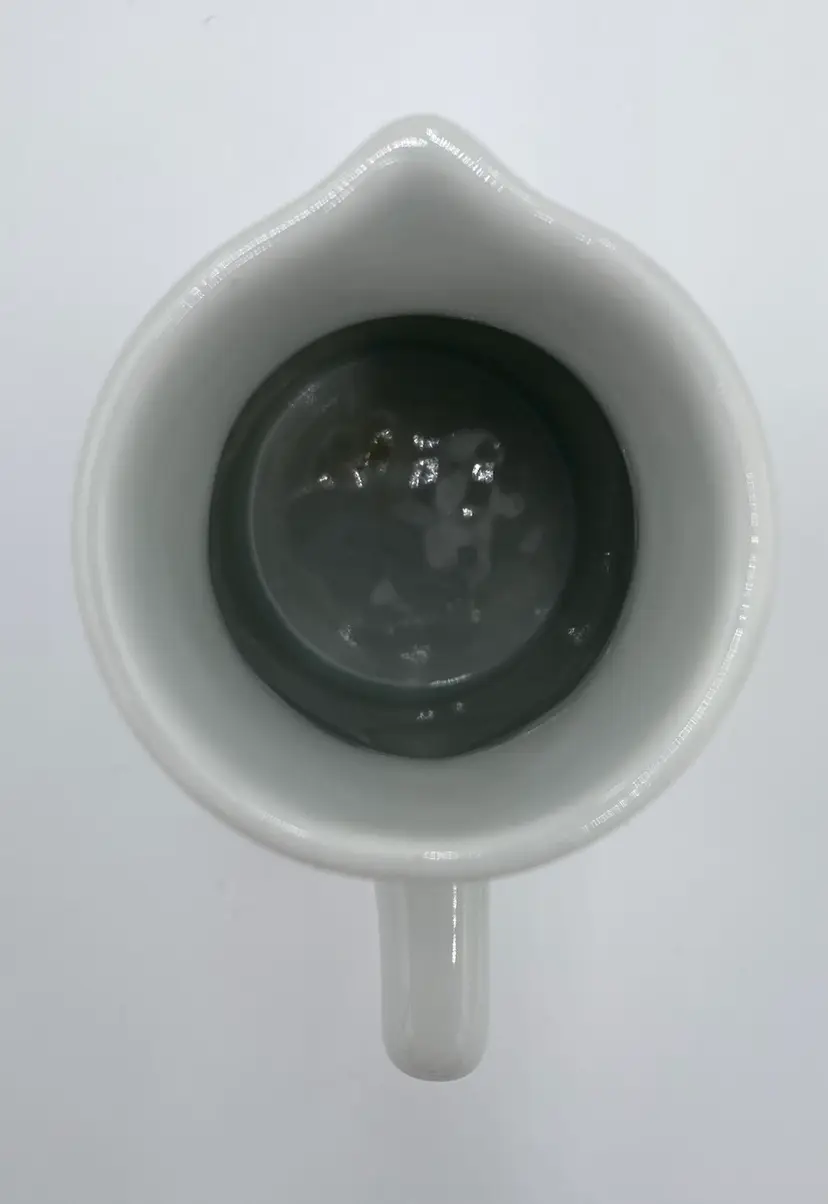 Dimensions: Pitcher - 4.9 inches tall, 3.6 inches long, 2.75 inches diameter (base), 2.3 inches diameter (opening) Cup - 3.1 inches tall, 2.6 inches in diameter (opening)