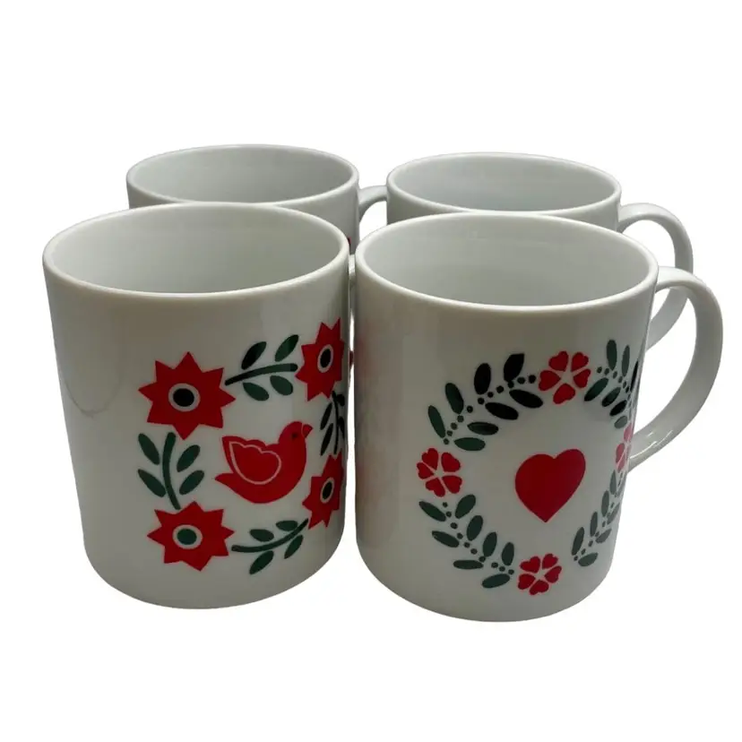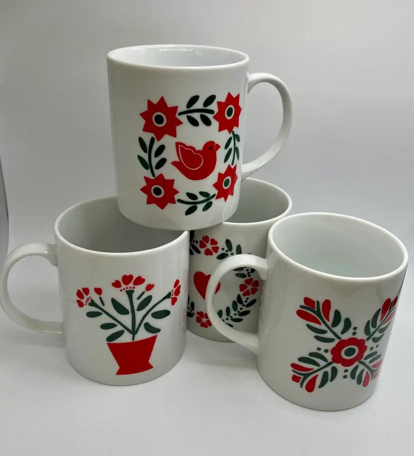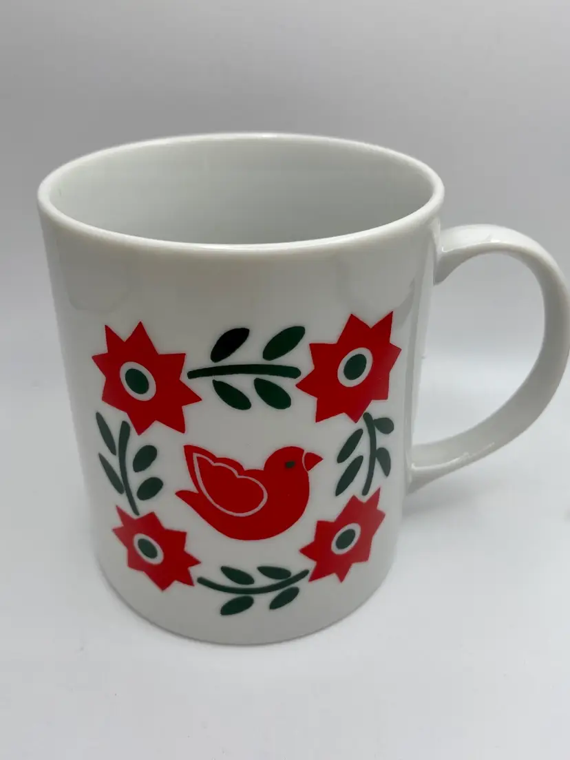 Pennsylvania Dutch style, red flowers, red bird Made in Japan 3.5” high