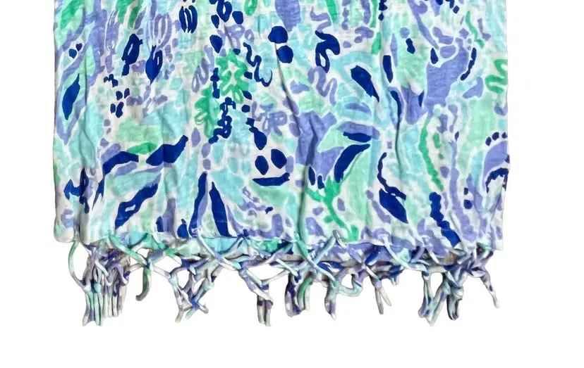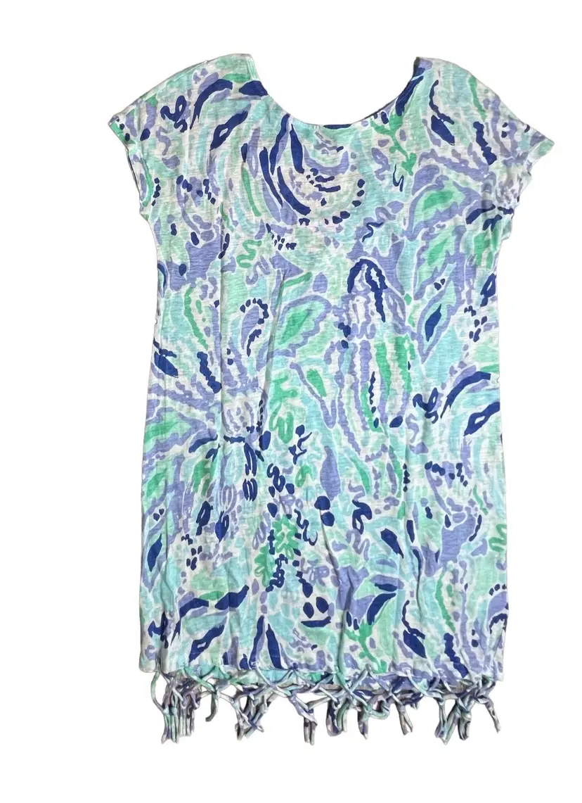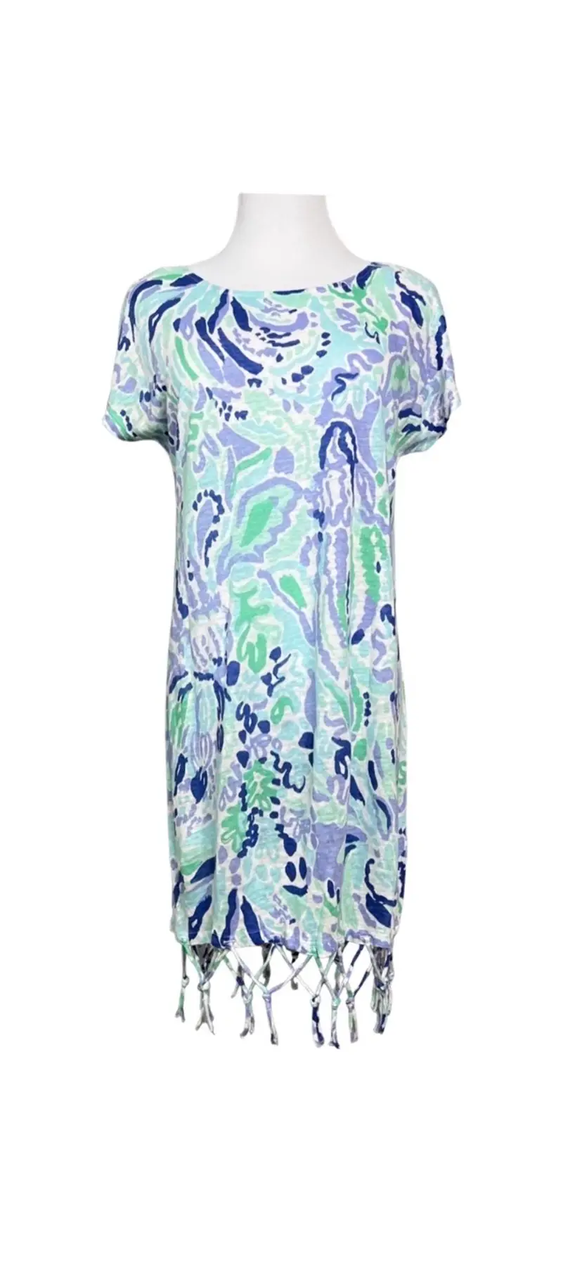 Lilly Pulitzer Beachcomber Dress Lilly Lilac Nice Ink sz SMALL. A-line dress or Coverup with short sleeves and fringed hemline. 100% Linen. Hand washable. From the 2016 collection. No rips, tears, stains of any kind, holes, defects, pilling or alterations. Retails $138. Very close to new. In excellent condition. Beach, Coastal, Watercolor, Feminine.