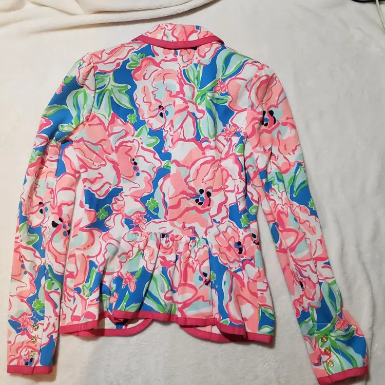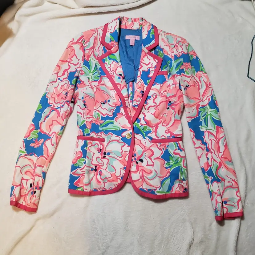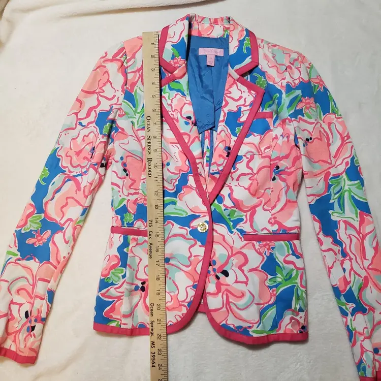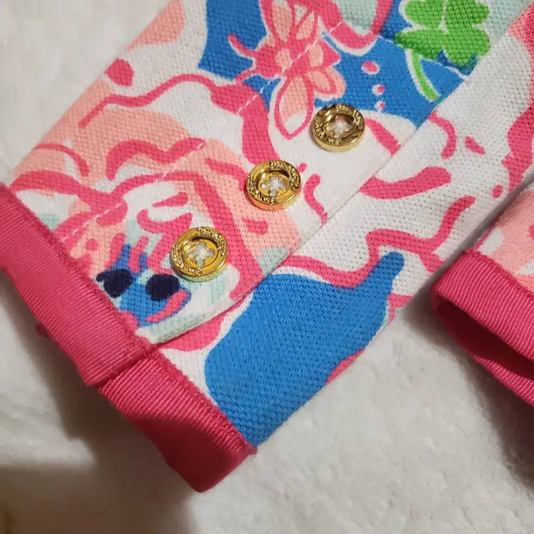 Outer Shell Material: 100% Cotton Character: Lilli Closure: Button Occasion: Business/Casual/Party Size: XS Color: Flutter Blue Lucky Charm Lining Material: 100% Acetate Accents: Button Vintage: No Brand: Lilly Pulitzer Size Type: Regular Department: Women Type: Jacket Style: Button Jacket Theme: Lucky Charm Features: All Seasons