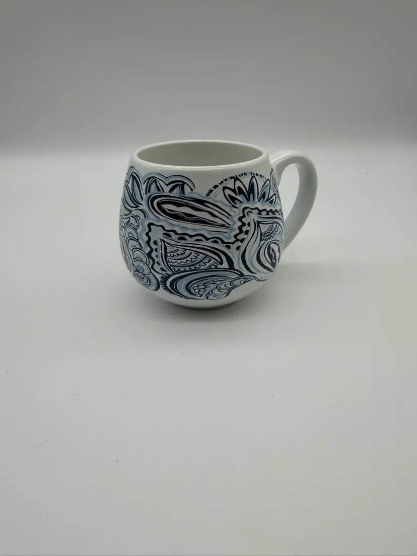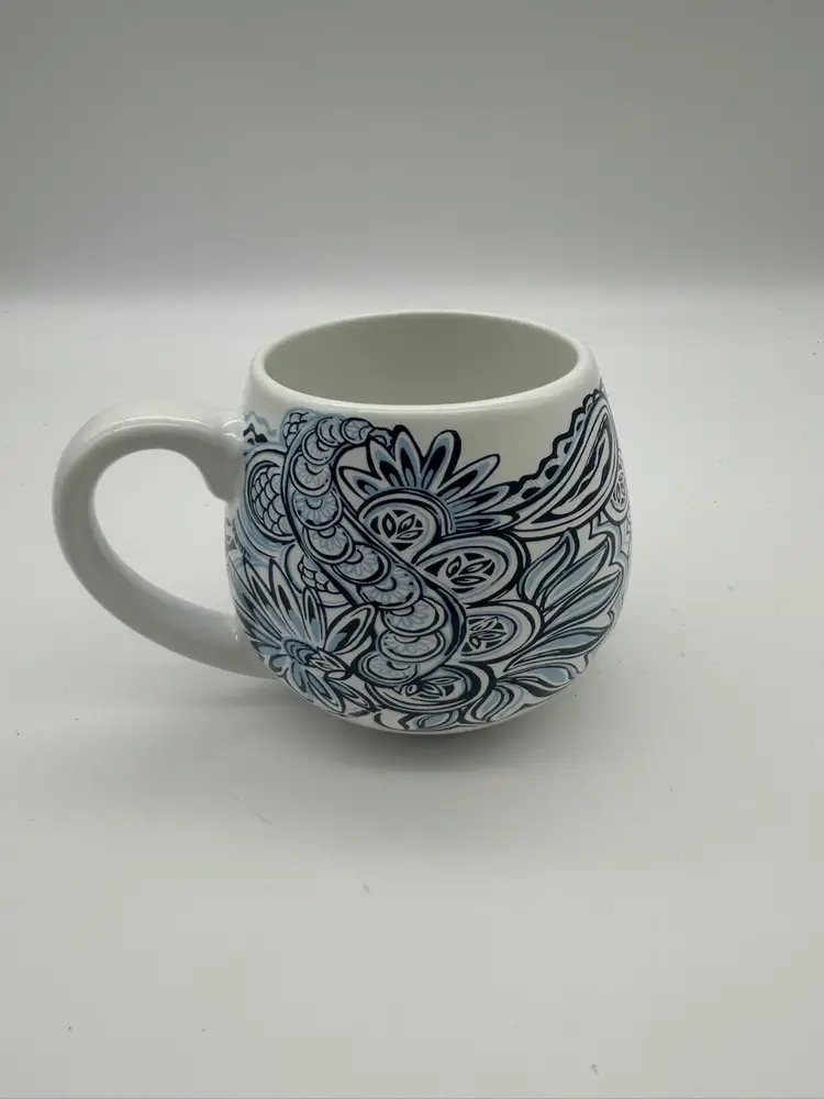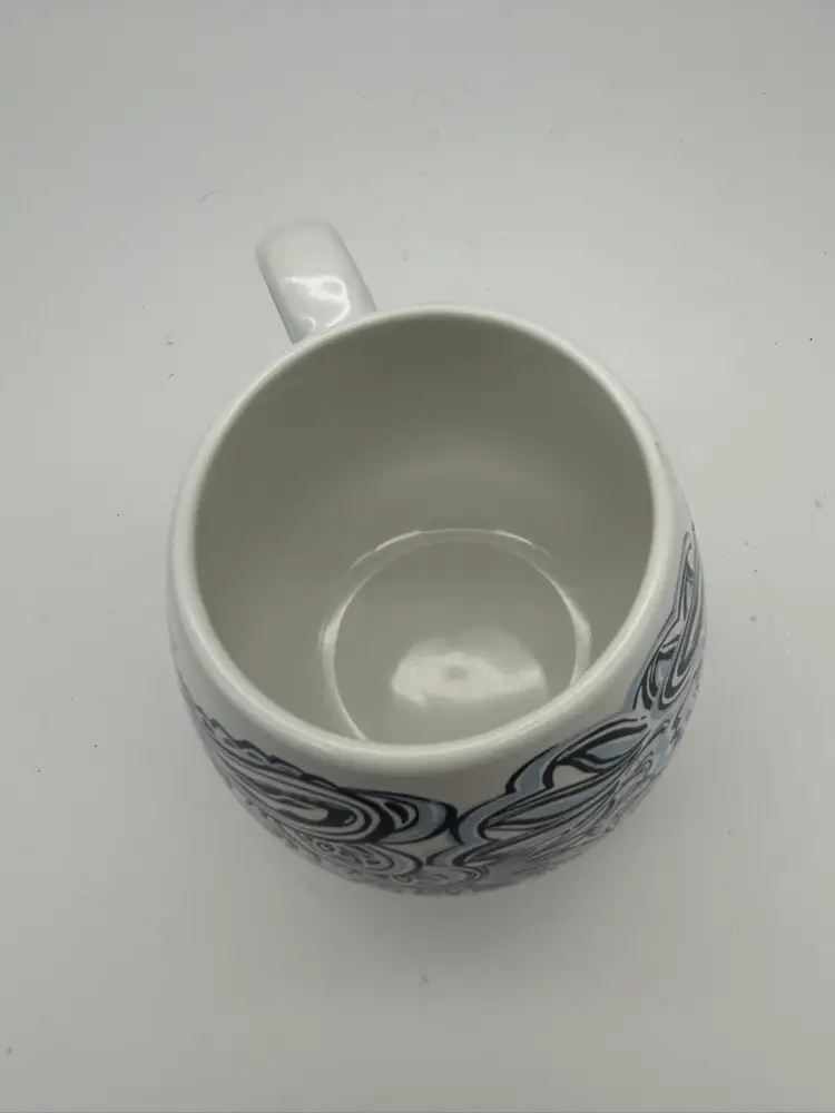 This ceramic mug “Resort White Give it a Whirl” holds 16.7 ounces. It is in mint condition, approximately 4” tall and 3” in diameter.