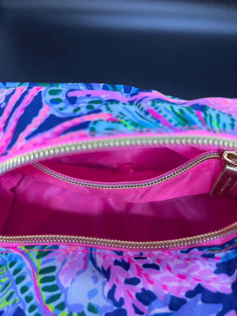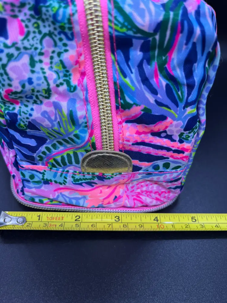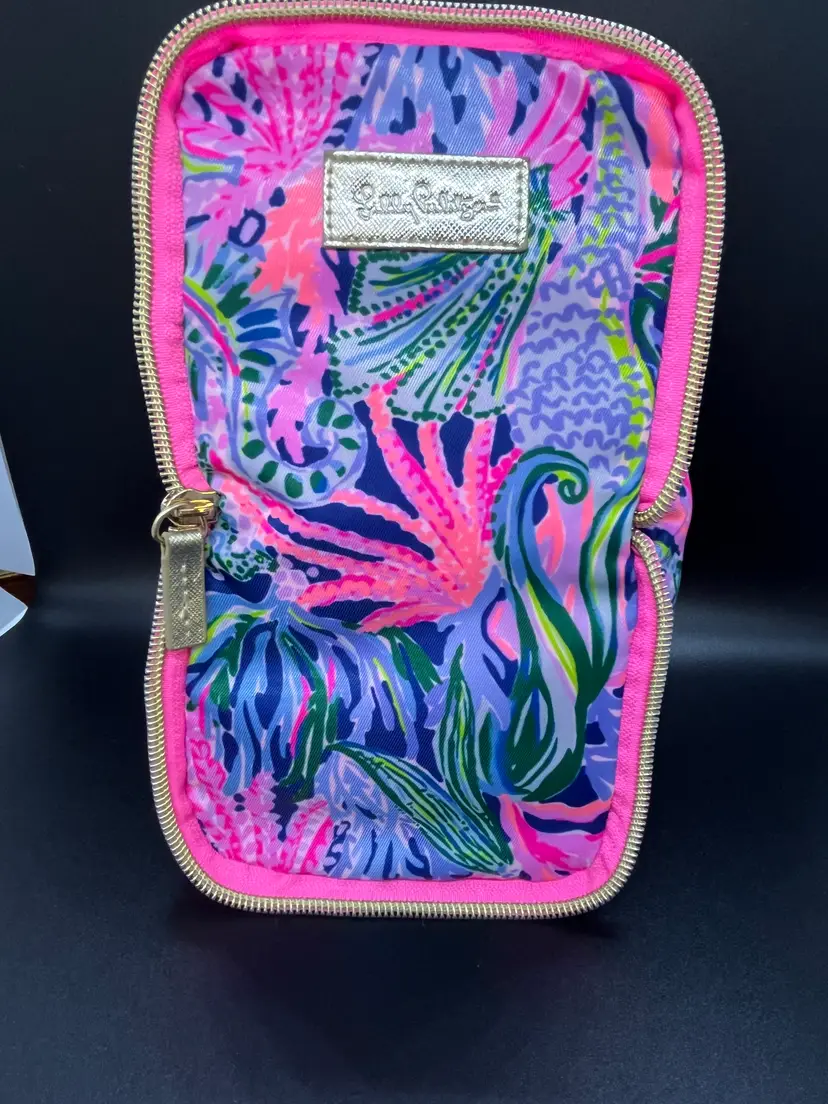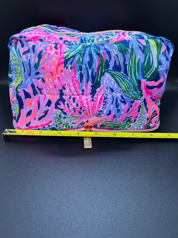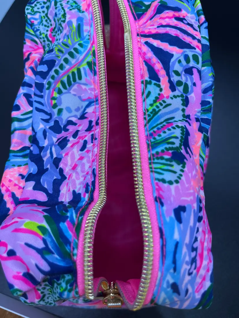 Brighten up your essentials with this Lilly Pulitzer zip cosmetic bag featuring a vibrant, colorful print. Compact yet spacious, it's perfect for keeping organized in style. A chic accessory for any fashion lover. Excellent condition. SKU B108