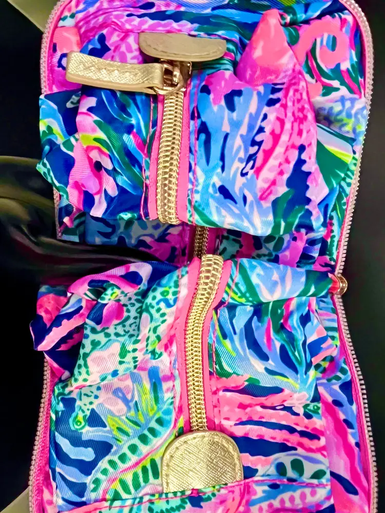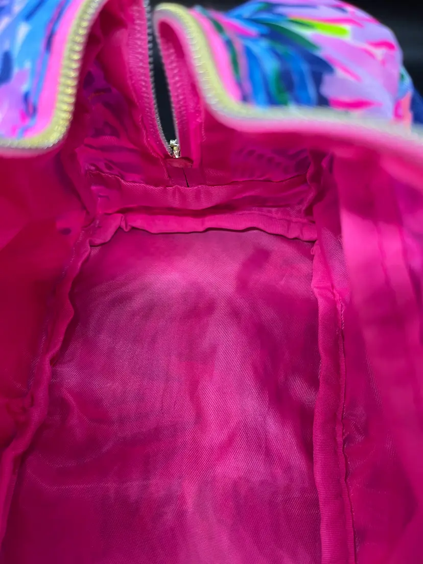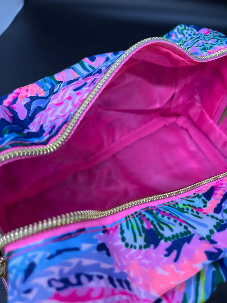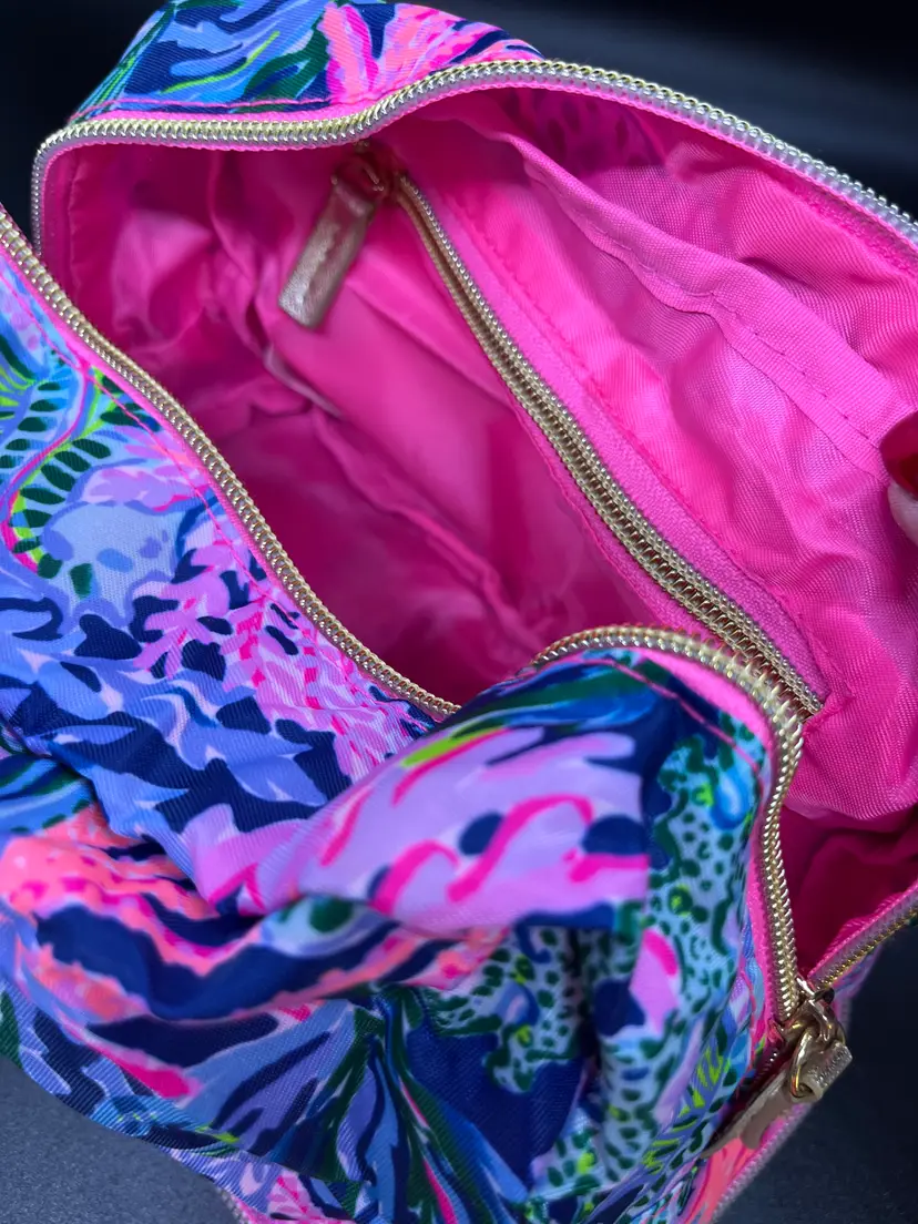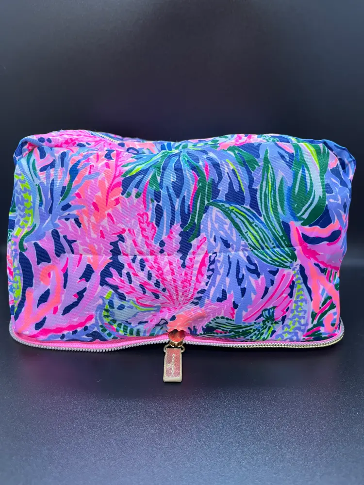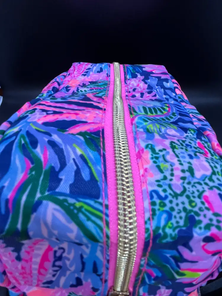 Brighten up your essentials with this Lilly Pulitzer zip cosmetic bag featuring a vibrant, colorful print. Compact yet spacious, it's perfect for keeping organized in style. A chic accessory for any fashion lover. Excellent condition. SKU B108