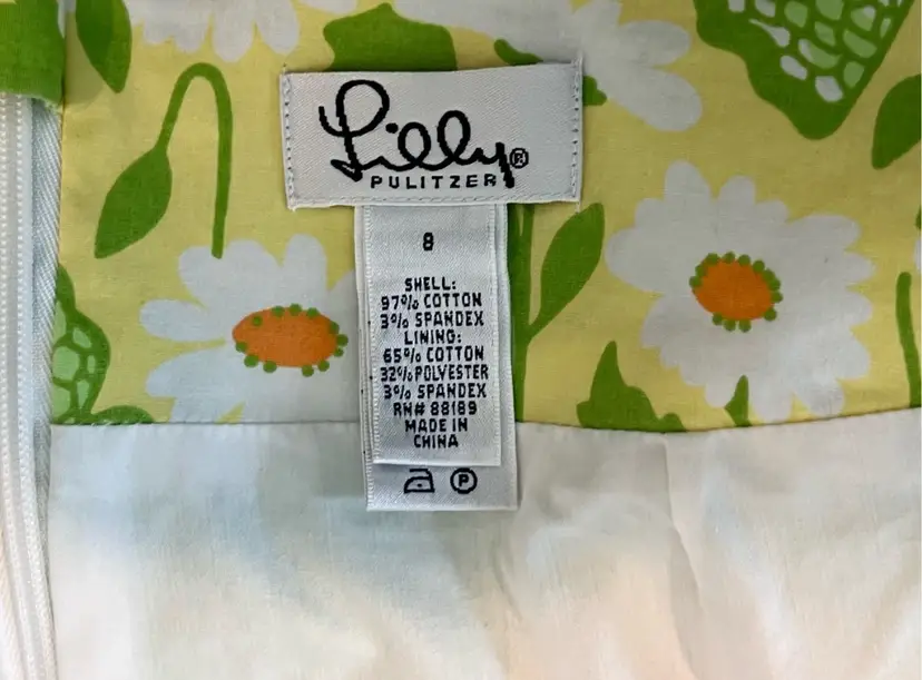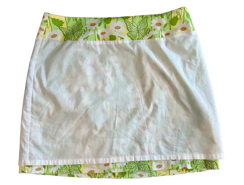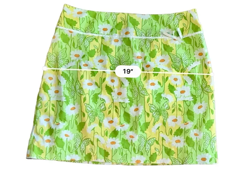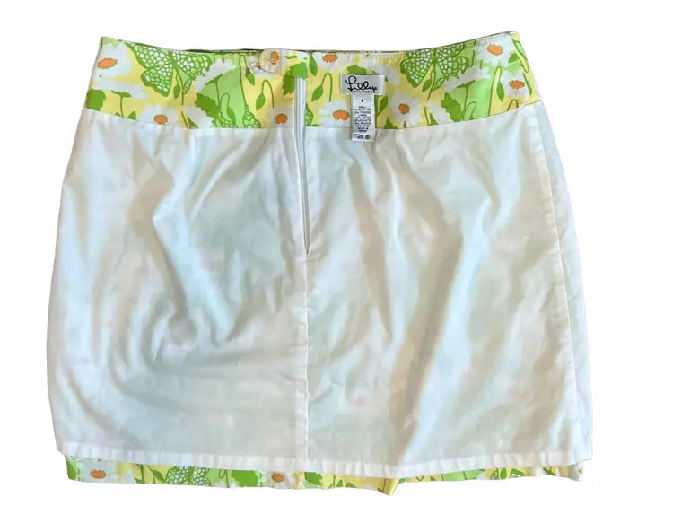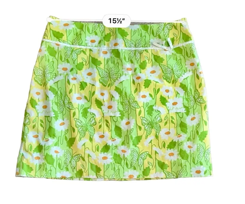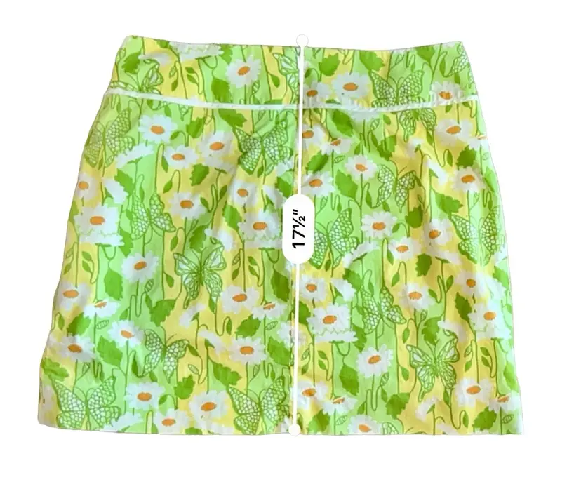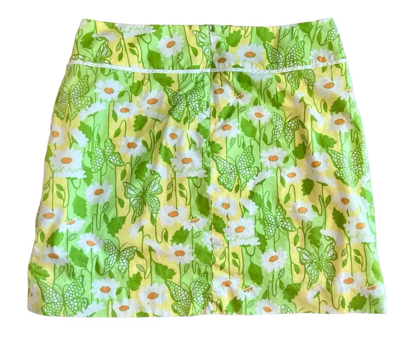 Lilly Pulitzer Vintage Socialite Butterfly Mini Skirt sz 8 Feminine Daisy Floral. Beautiful early 2000's print and style. Item in excellent gently used condition. Hidden zipper closure, wide waistband with trim and fully lined. No known rips, tears, holes, stains or defects. Girly, Vintage, Colorful, Flowers, Bright.