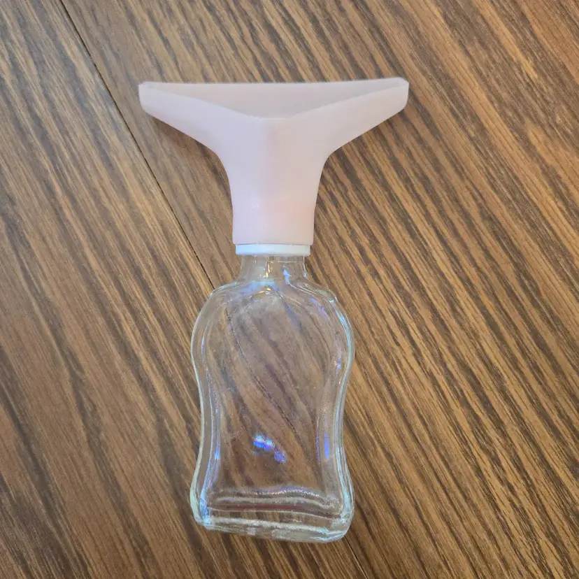Lilt home perm bottle with "catcher" for permanent solution when dabbing it on the rollers.
