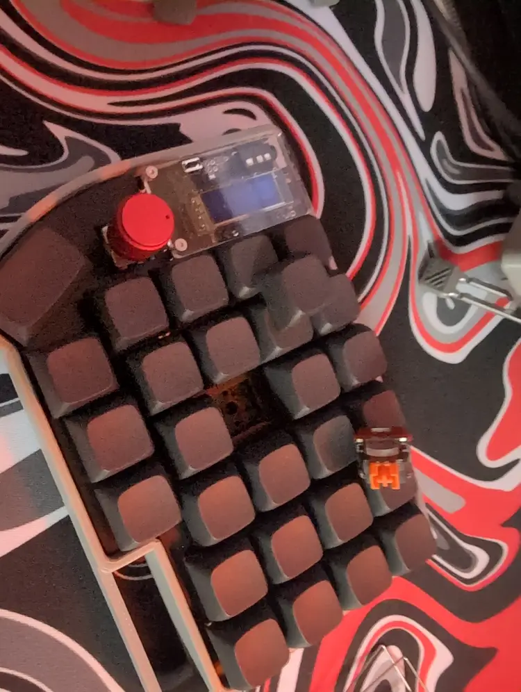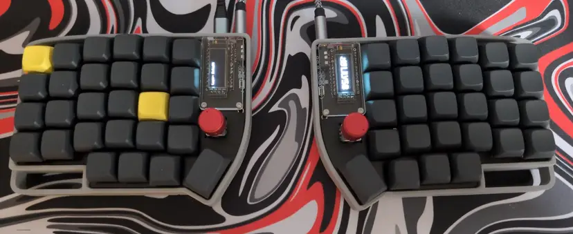 See sound test. Durable PETG case Comes with Legs for medium tenting. https://www.thingiverse.com/thing:5386099 QMK/VIA flashed (upload VIA definition) Hotswap sockets, no RGB LEDs soldered but can be added. Dual encoder knobs (currently mapped to volume) Back foam and poron stickers against the PCB for sound dampening Comes with the switches and caps pictured( GAMAKAY Mars) Note:yellow pointer key has superglue bump for touchtyping It worked well for me but understandably not for everyone.