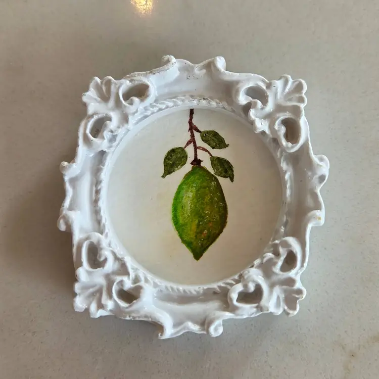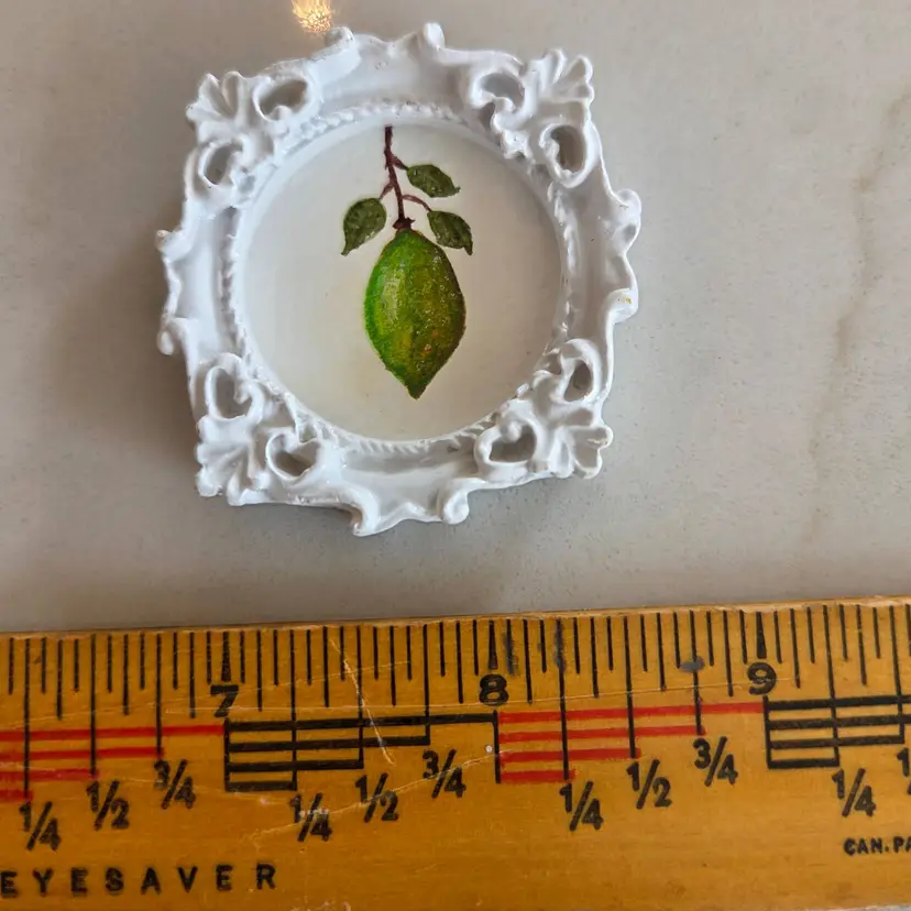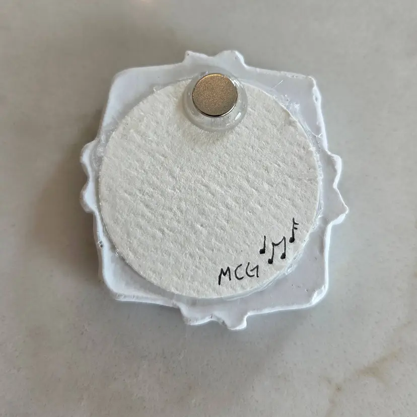 Original watercolor miniature painting. White frame and Neodymium magnet on back. Painting front protected by cold wax.