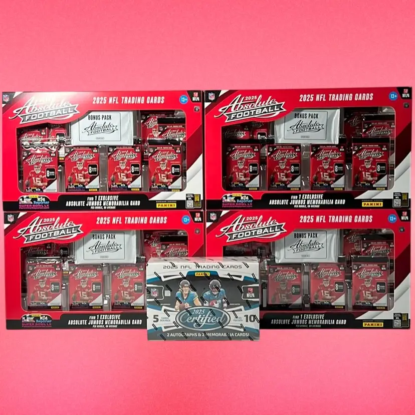 LIMIT 1 Please! 1 Certified Football Hobby Box, 4 Absolute Football Costco Value Bundles. You are purchasing 1 unknown team, assigned to you via live verified draw minutes before we open the boxes. You’ll have that same team in all the boxes. This is a stacked shipping item and will not ship until the “shipping request” is purchased for $6 or you have an item purchased that includes free shipping to combine it with. There is no deadline to purchase shipping and your stack is saved indefinitely.