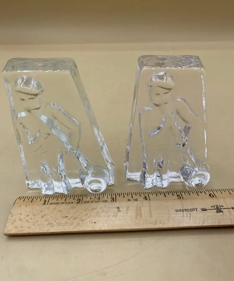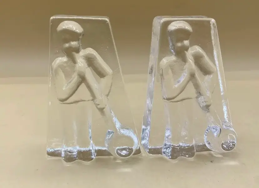 Lindshammar Glass Blower Pair Sculpture 4" Paperweight Swedish LOT 2