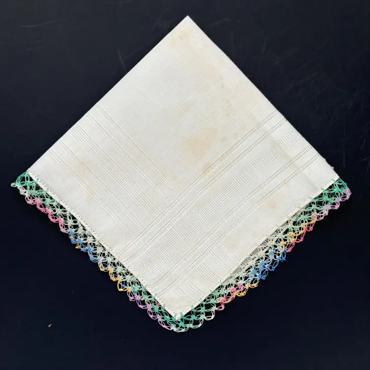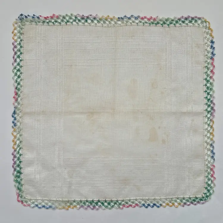 Some discoloration due to age, measures approx. 13” x 13”.