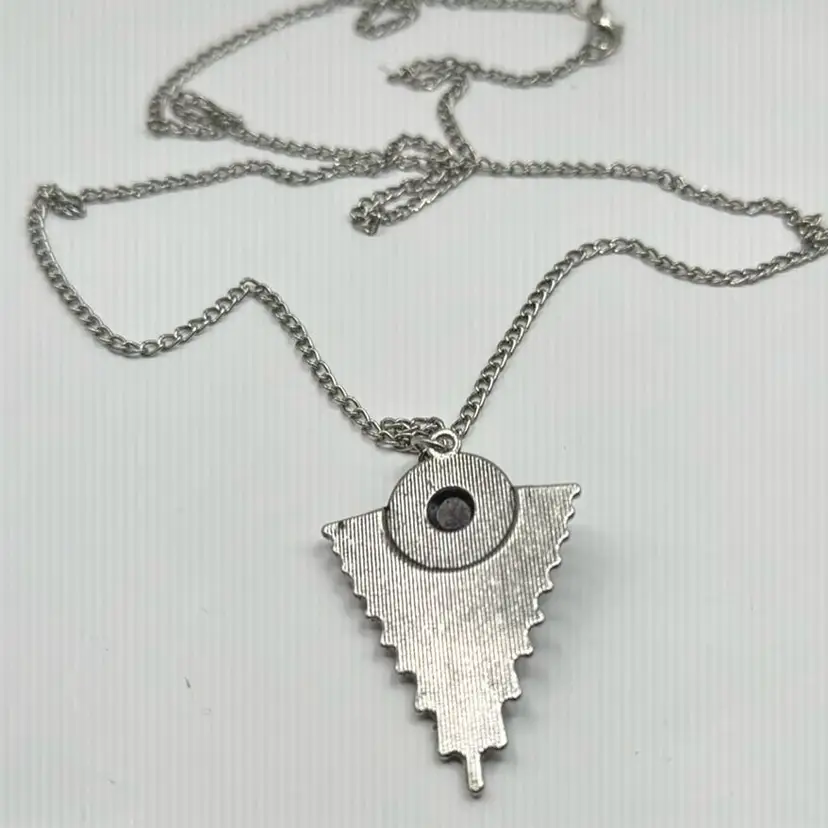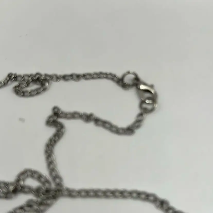 Costume jewelry. Pendant has a MCM style. Pearl is plastic. Chain measures almost 15” long w/ closed clasp.