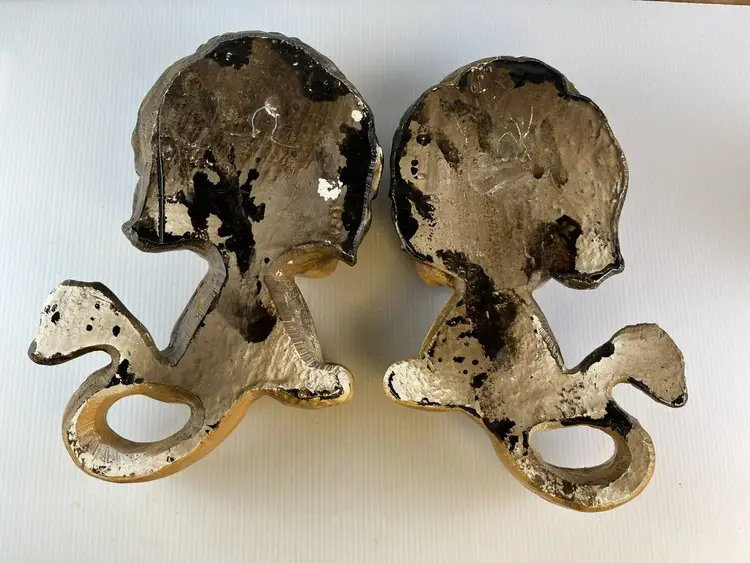 This listing is for a pair of plaster Mid Century, Kitschy Homco Lion Wall Hangers. They have several chips and dings but are perfectly imperfect. They are so adorable and charming!