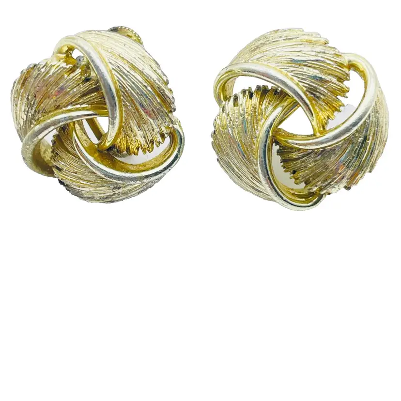LISNER Screw Back Earrings Gold Tone Love Knot Textured