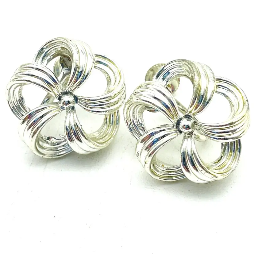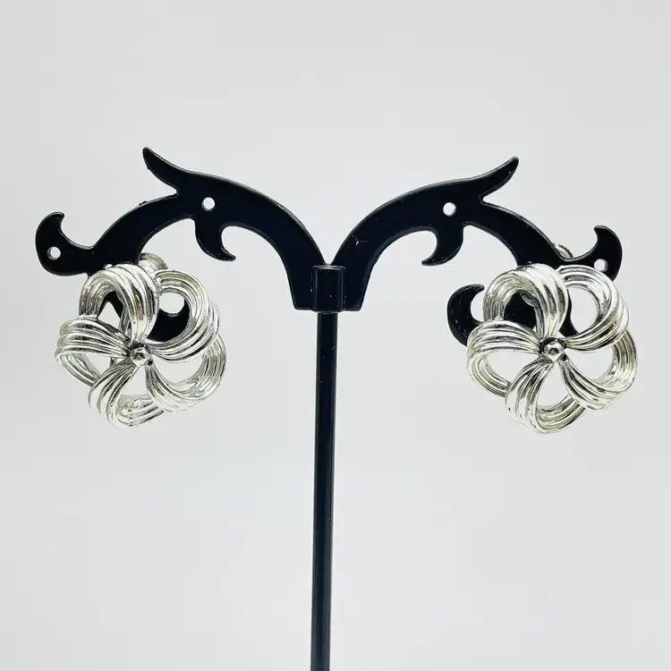 LISNER Floral Ribbon Earrings Screwback Silver Tone Classic Career Cosplay LARP