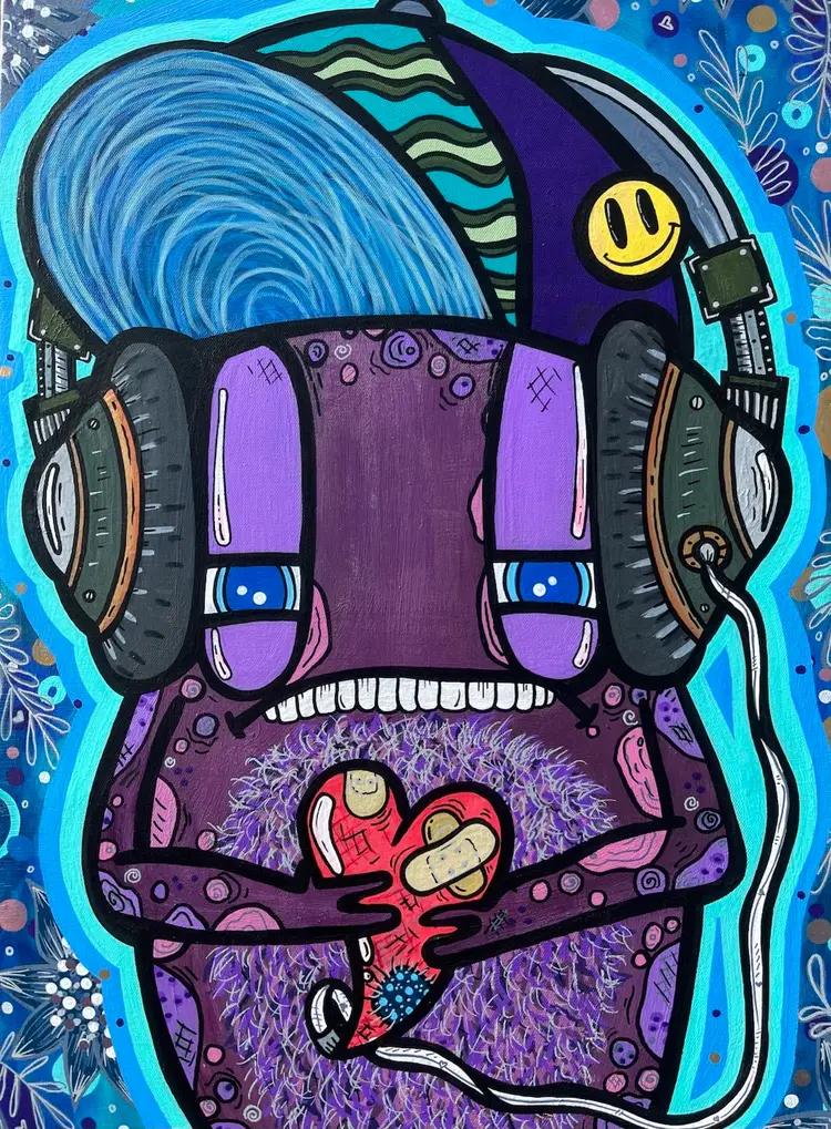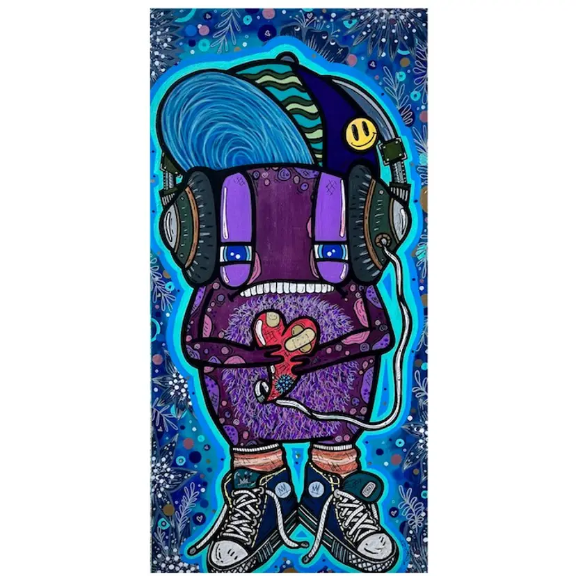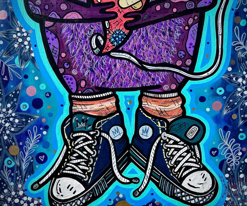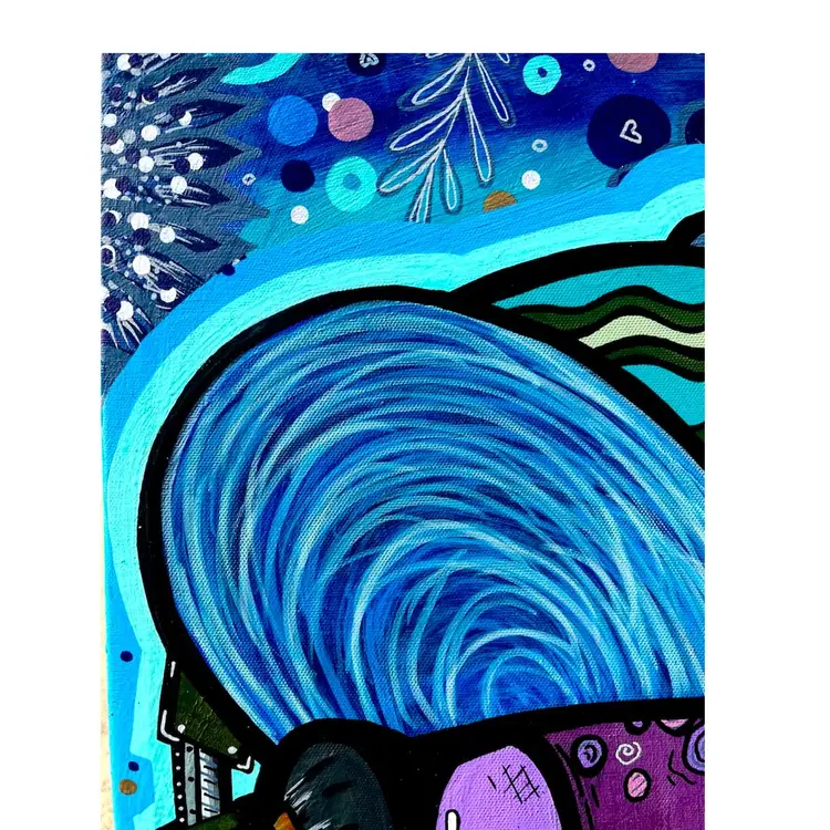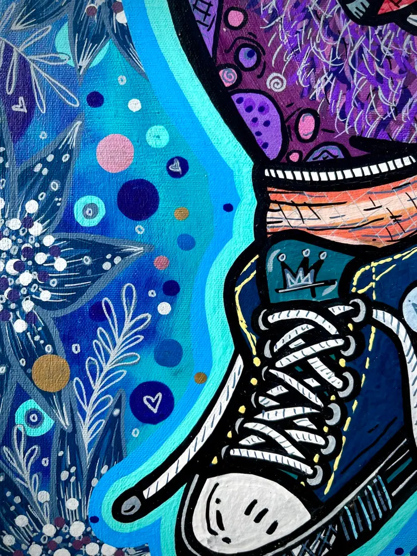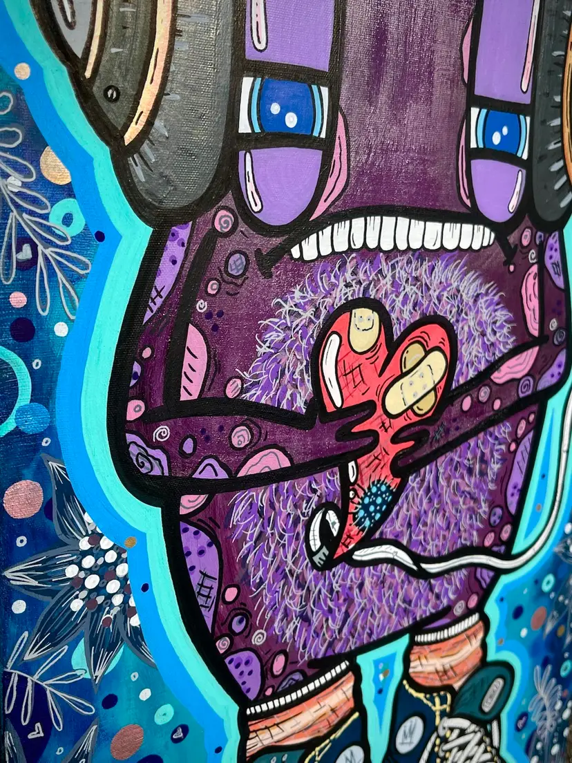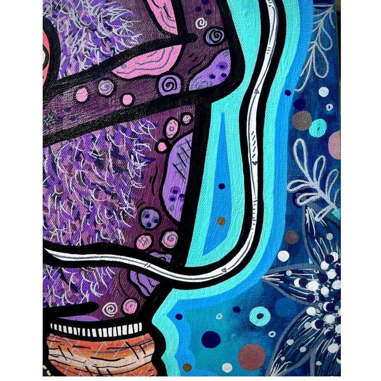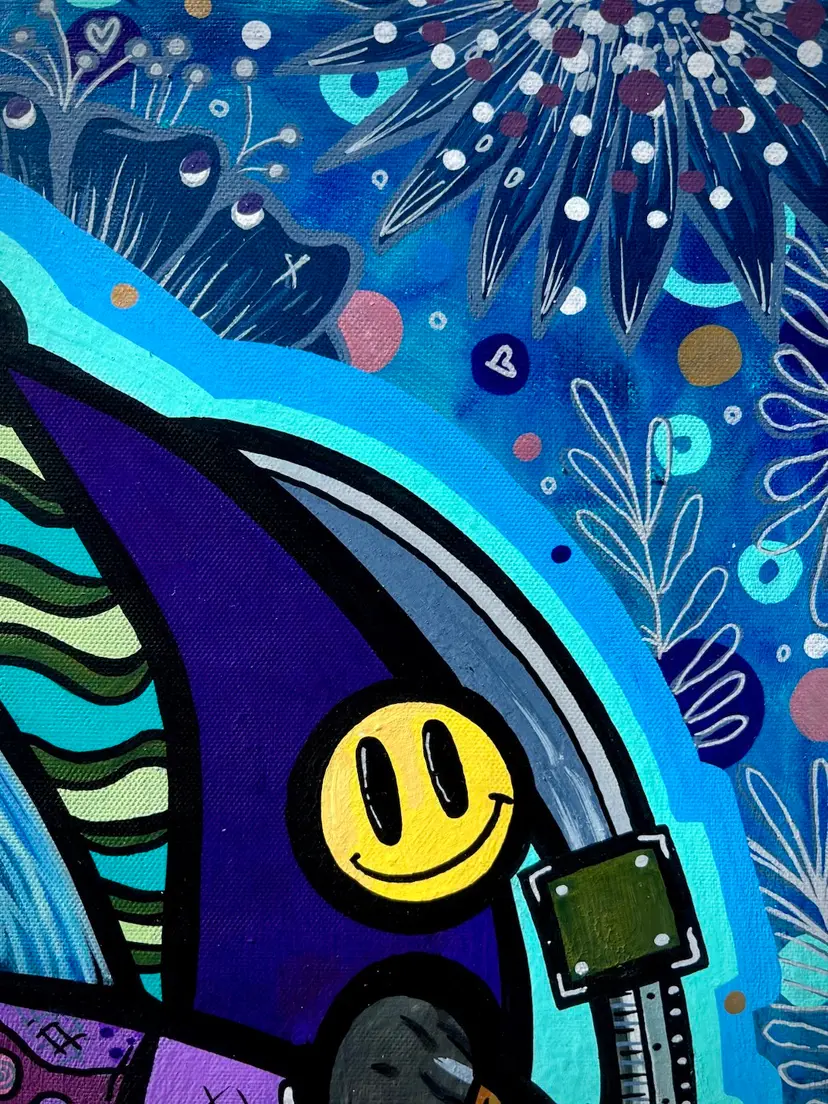 This little guy is acrylic on canvas, gloss varnish, ready to hang! This piece is approx 12” x 24”