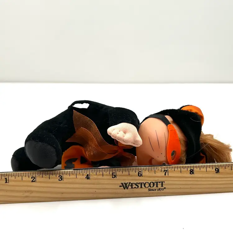As shown 8 inches tall by 5 inches wide Great shape with all of her accessories