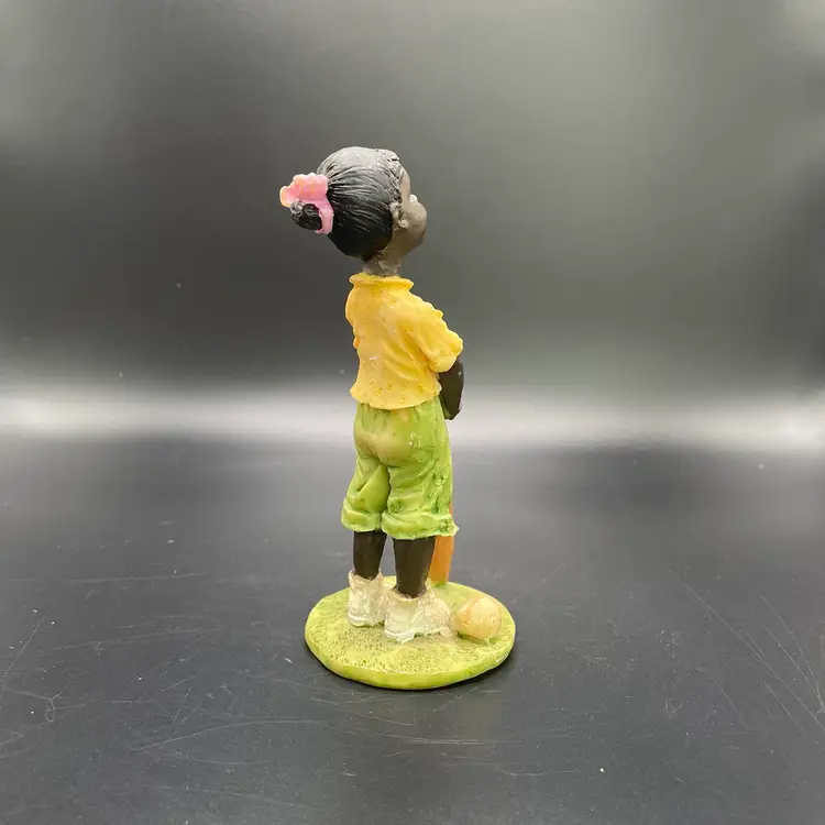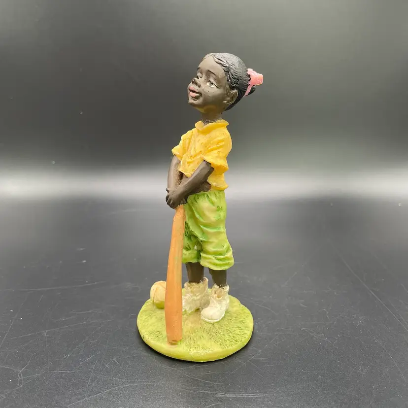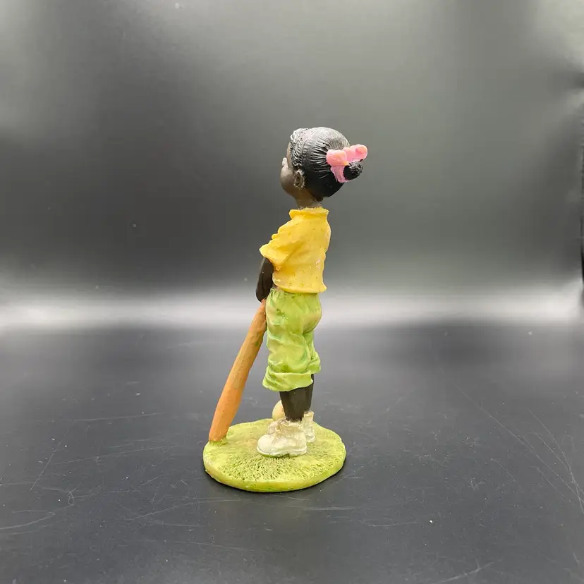 This is a little girl baseball player resin figurine. She measures approximately 4.5" high. No chips or cracks.