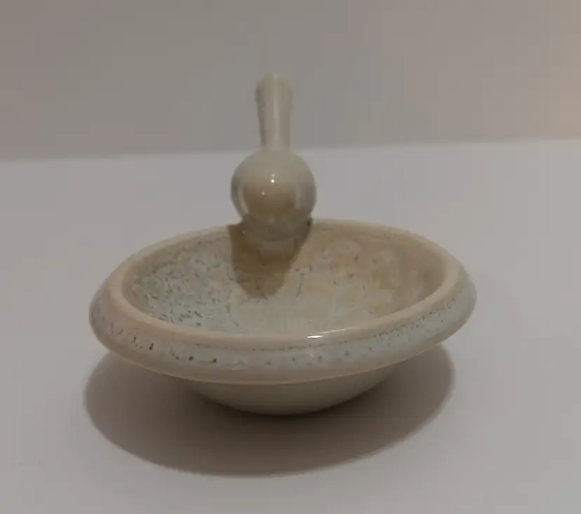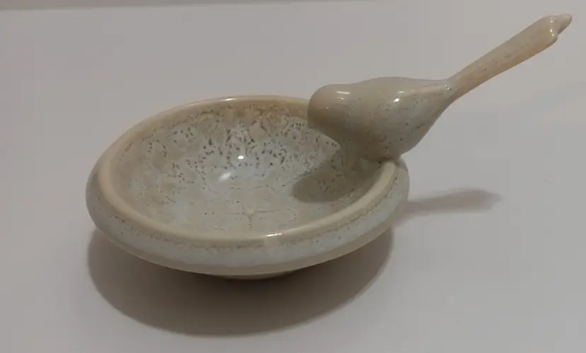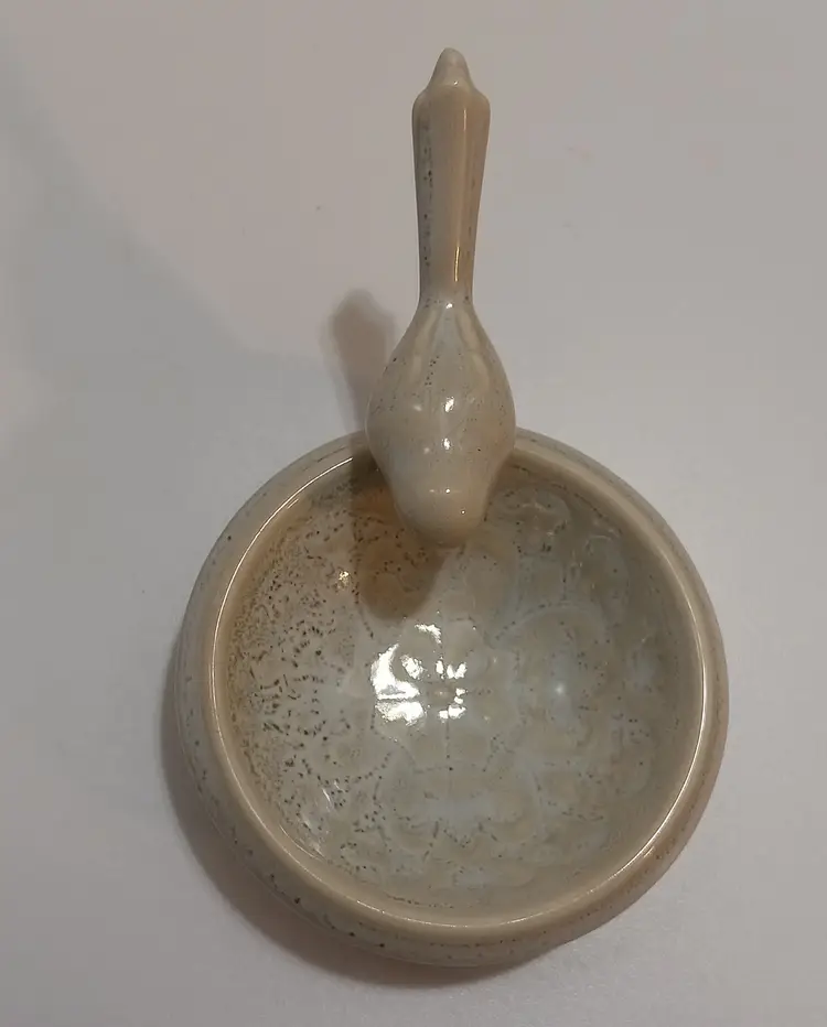 Very Nice Little Stoneware Trinket Dish with Cute Little Bird on the Rim and Pretty Little Floral Design in the Bowl! Adorable! No Chips or Cracks; 4.5" L x 3" W x 2" T