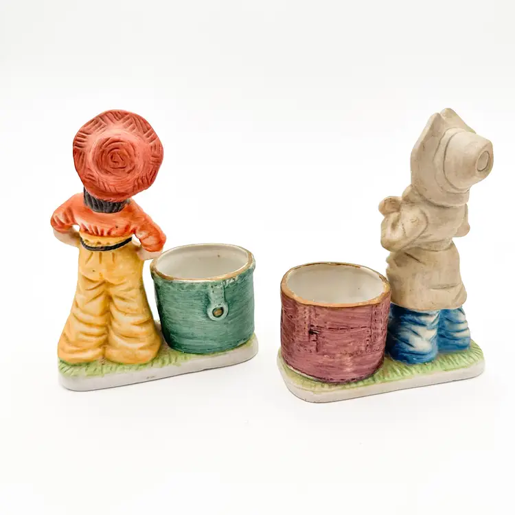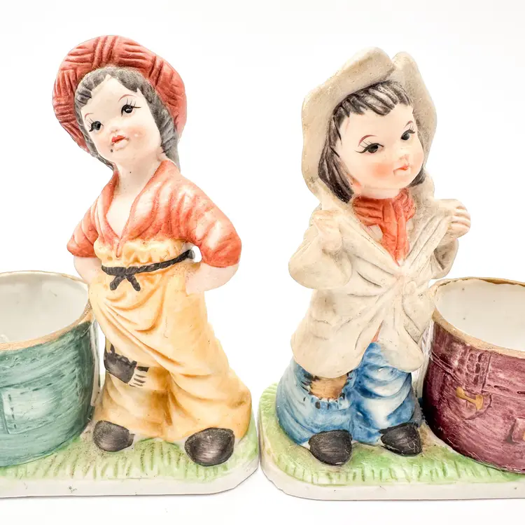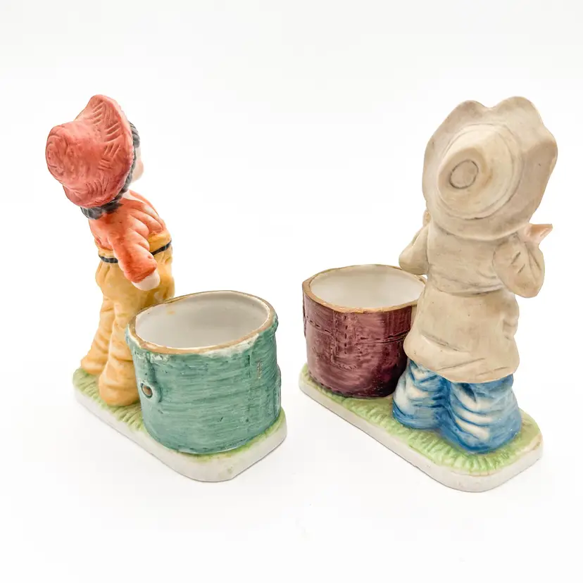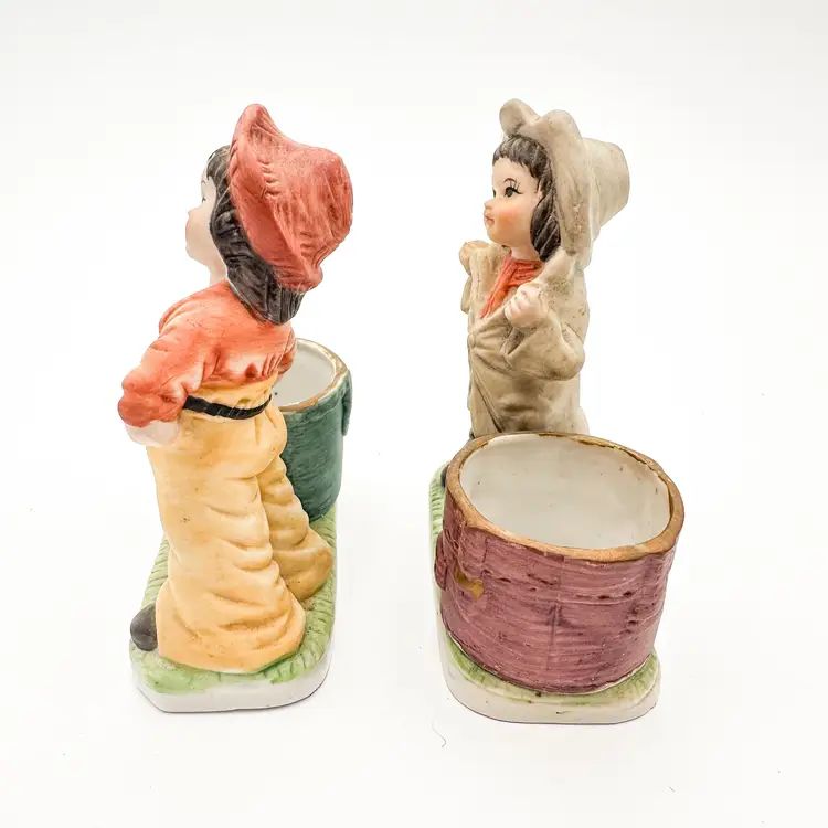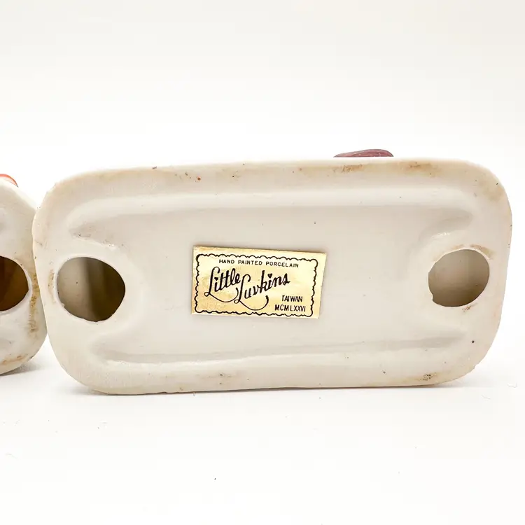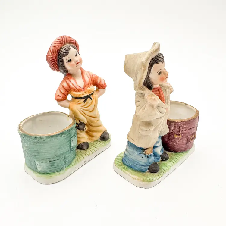 Little Luvkins porcelain candle holders Lot of 2 Features girls in boy's oversized clothing Could be used as planters Approximately 4.5" H x 4" W Very good condition, light wear appropriate for age and use, no chips or cracks, see all photos