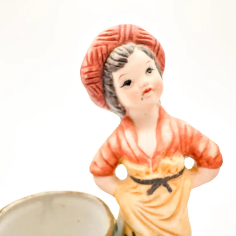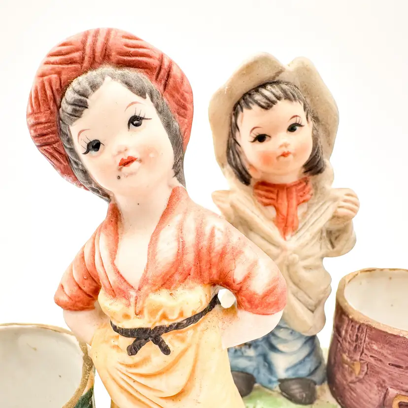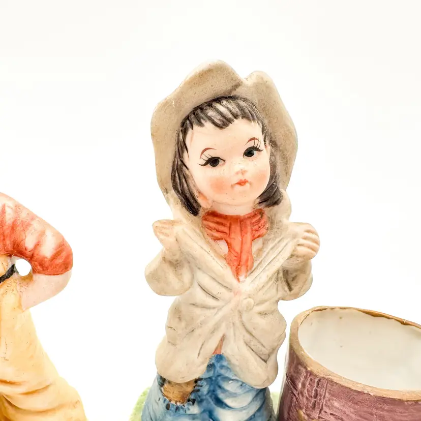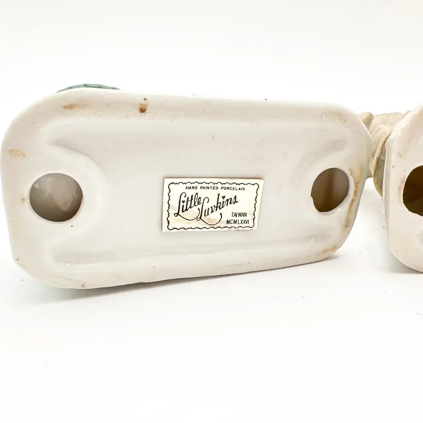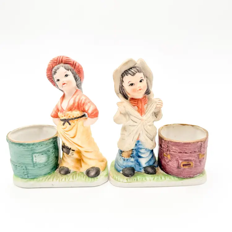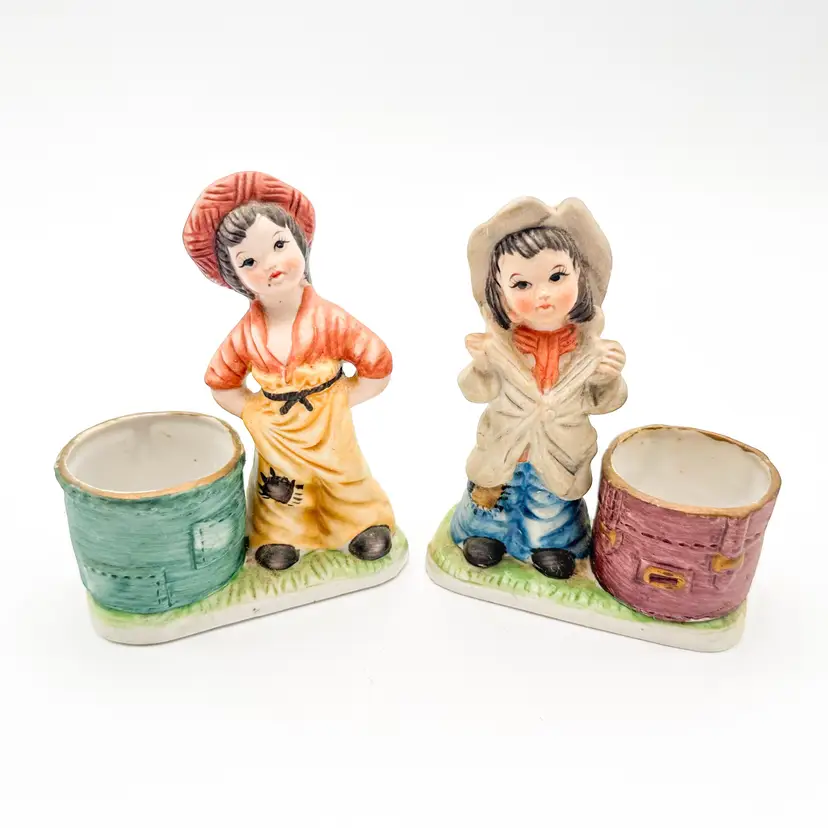 Little Luvkins porcelain candle holders Lot of 2 Features girls in boy's oversized clothing Could be used as planters Approximately 4.5" H x 4" W Very good condition, light wear appropriate for age and use, no chips or cracks, see all photos