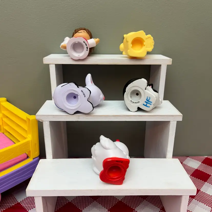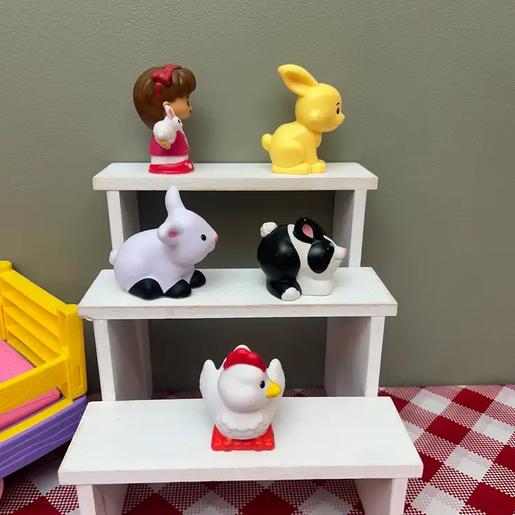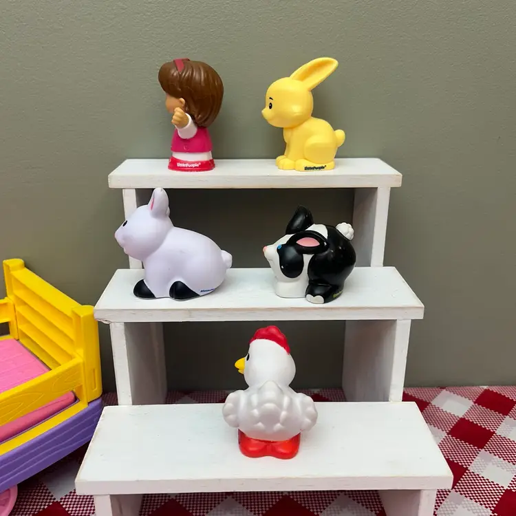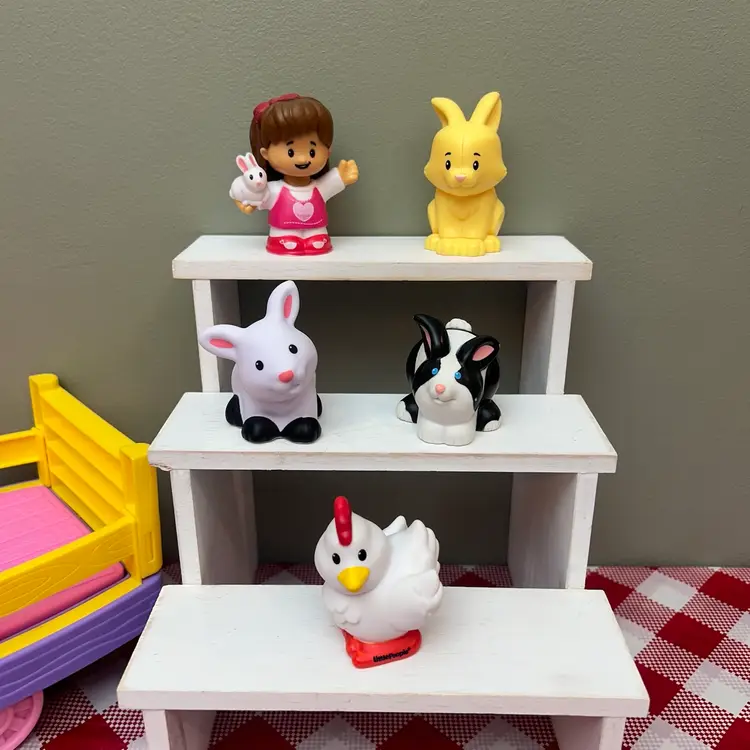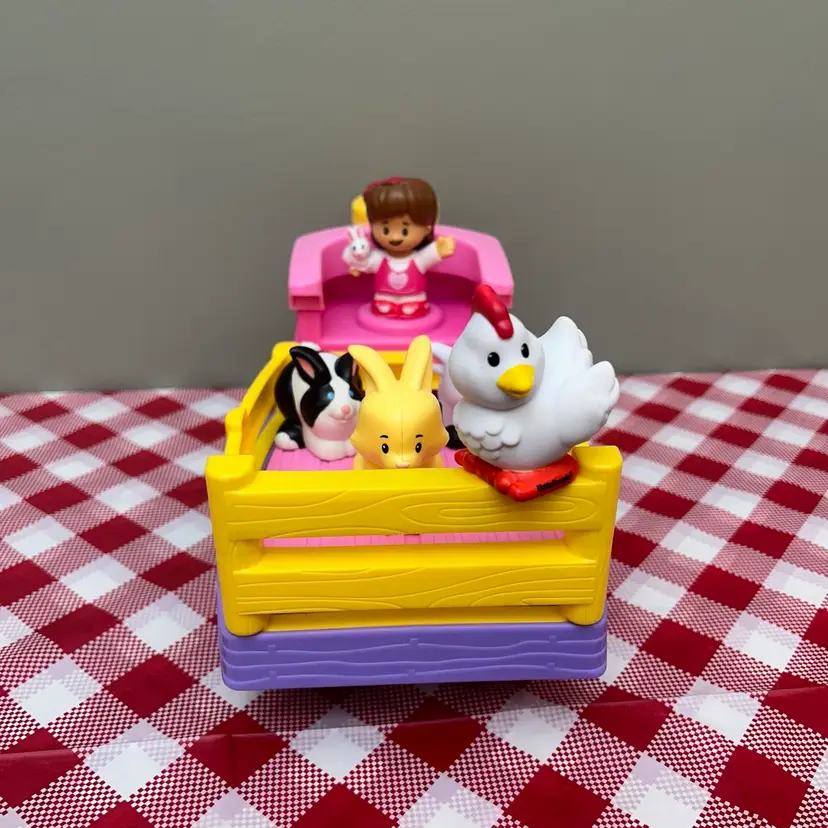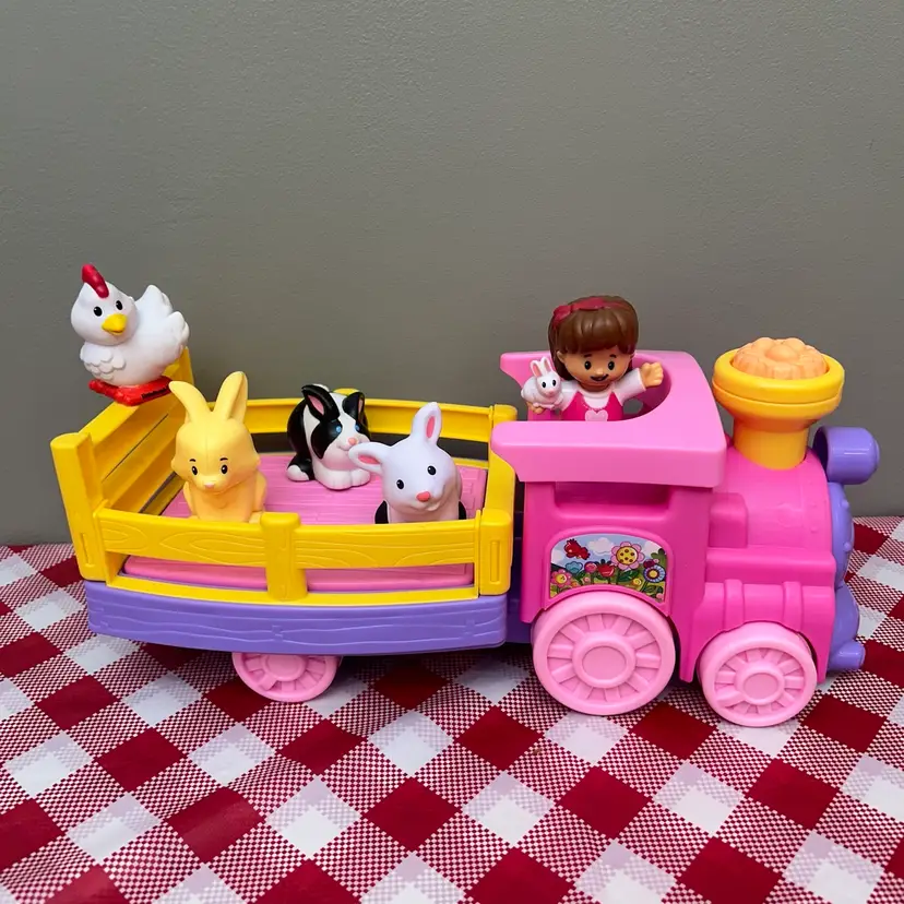 2014 Fisher Price Little People pink spring/easter animal train with various characters. Mia holding a bunny from 2016, white rabbit with black paws from 2014, tan rabbit from 2024, white chicken from 2013, and black & white bunny rabbit from 2001. Rabbit from 2001 has permanent marker on the bottom, please see last picture for details Gently used but in great collector condition or perfect for play time. See pictures for items specific conditions. Combined shipping is on & I am always open to offers or bundles!