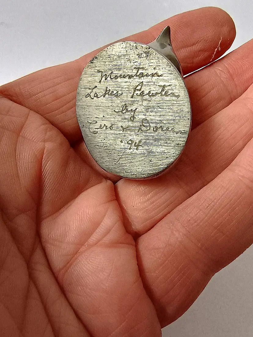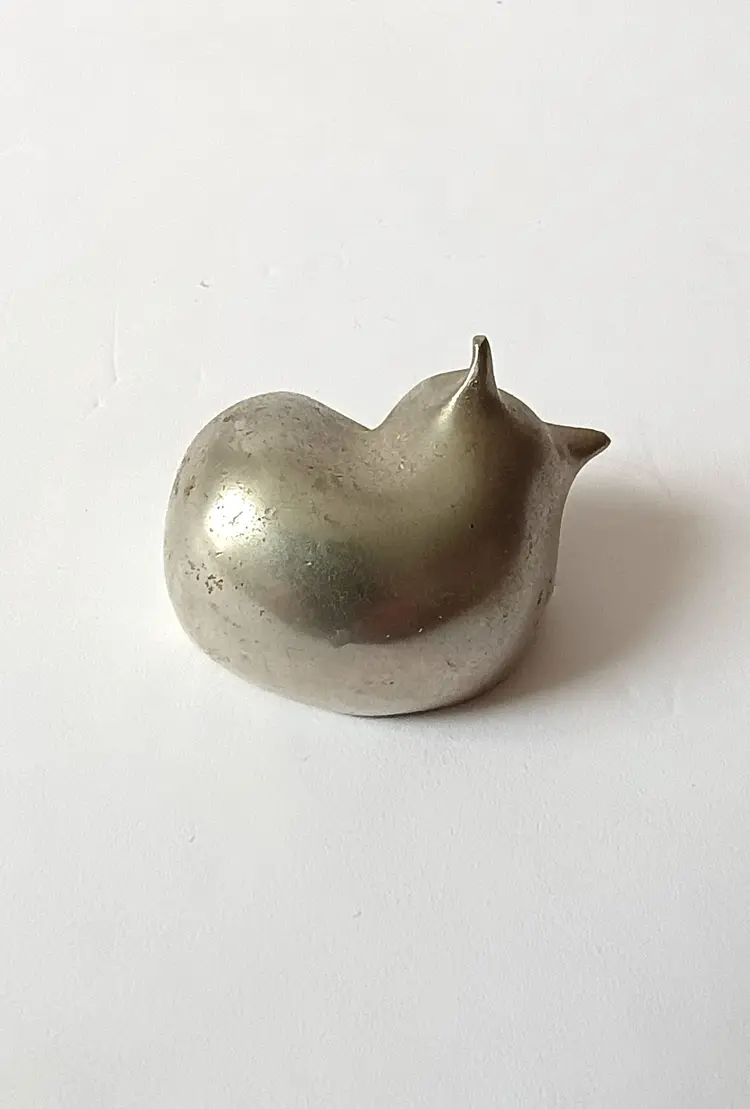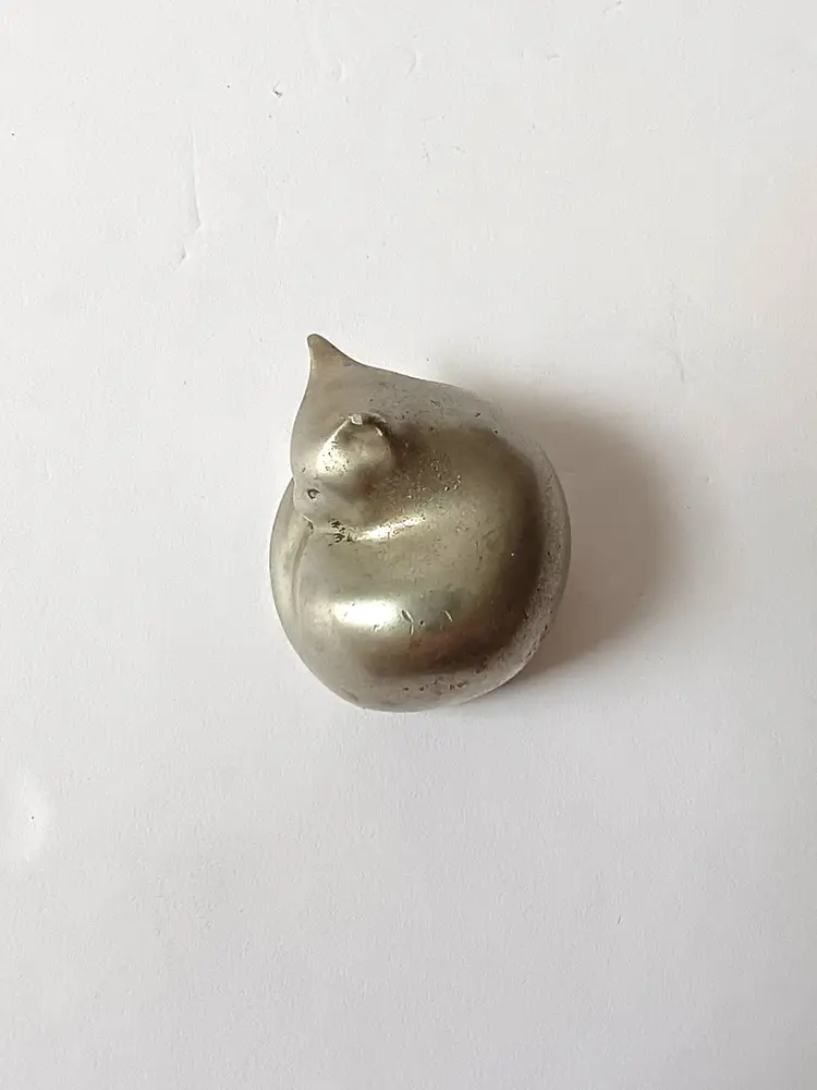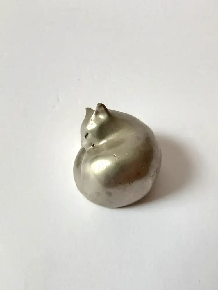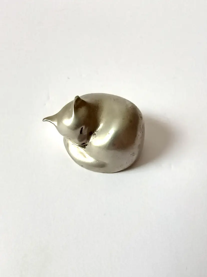 This sleepy little cat measures approx 1.5 inches across. Signed on the base.