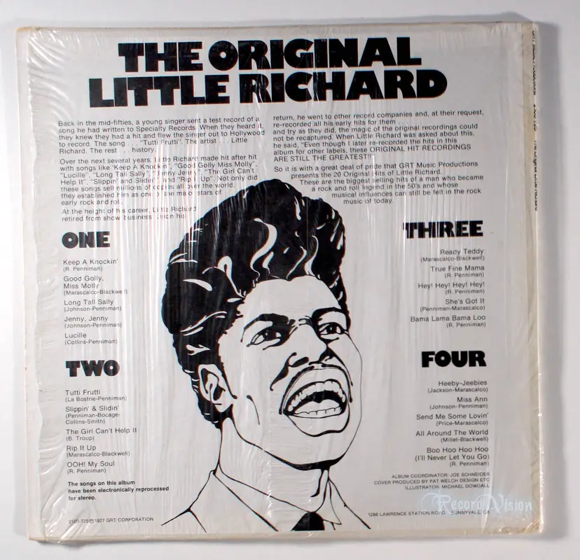 The Original Greatest Hits Of Little Richard, by Little Richard, released in 1980, is a compilation showcasing the pioneering rock and roll artist's most influential tracks from the 1950s. It captures his high-energy performances and distinctive piano-driven sound, which helped lay the foundation for rock music and influenced countless artists. Historically significant, Little Richard's work on this album, including hits from his Specialty Records era, bridged rhythm and blues with rock, shaping the genre's early development. Key hit singles featured include Tutti Frutti, Long Tall Sally, Rip It Up, Lucille, and Good Golly, Miss Molly, all of which were major chart successes and cultural touchstones. The collection remains a testament to his dynamic vocal style and enduring legacy in music history.