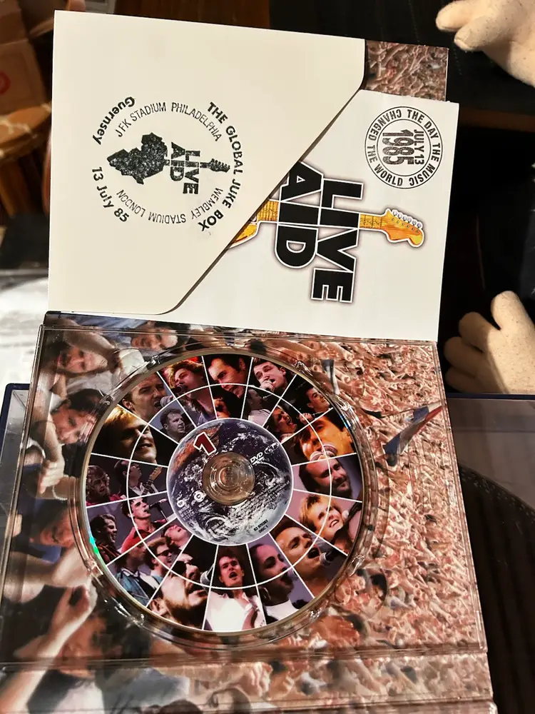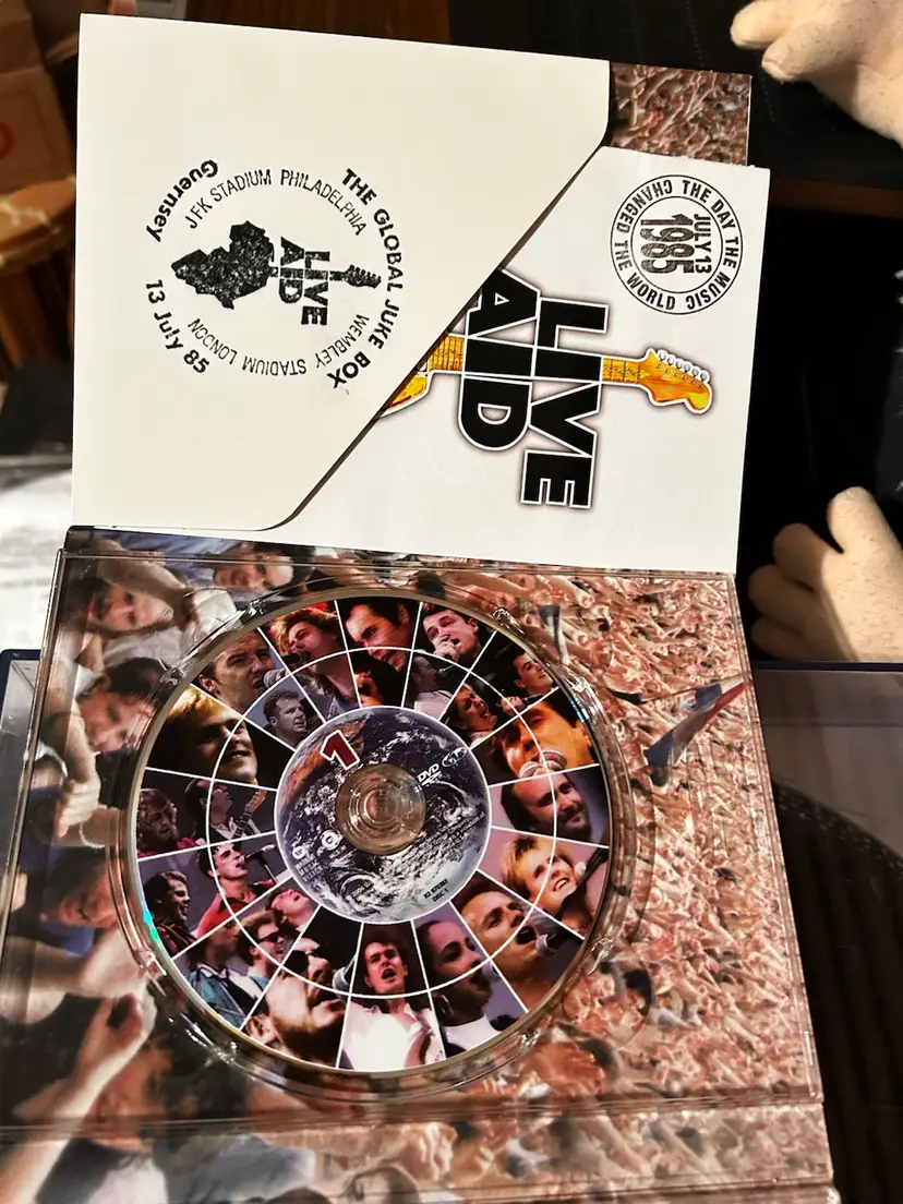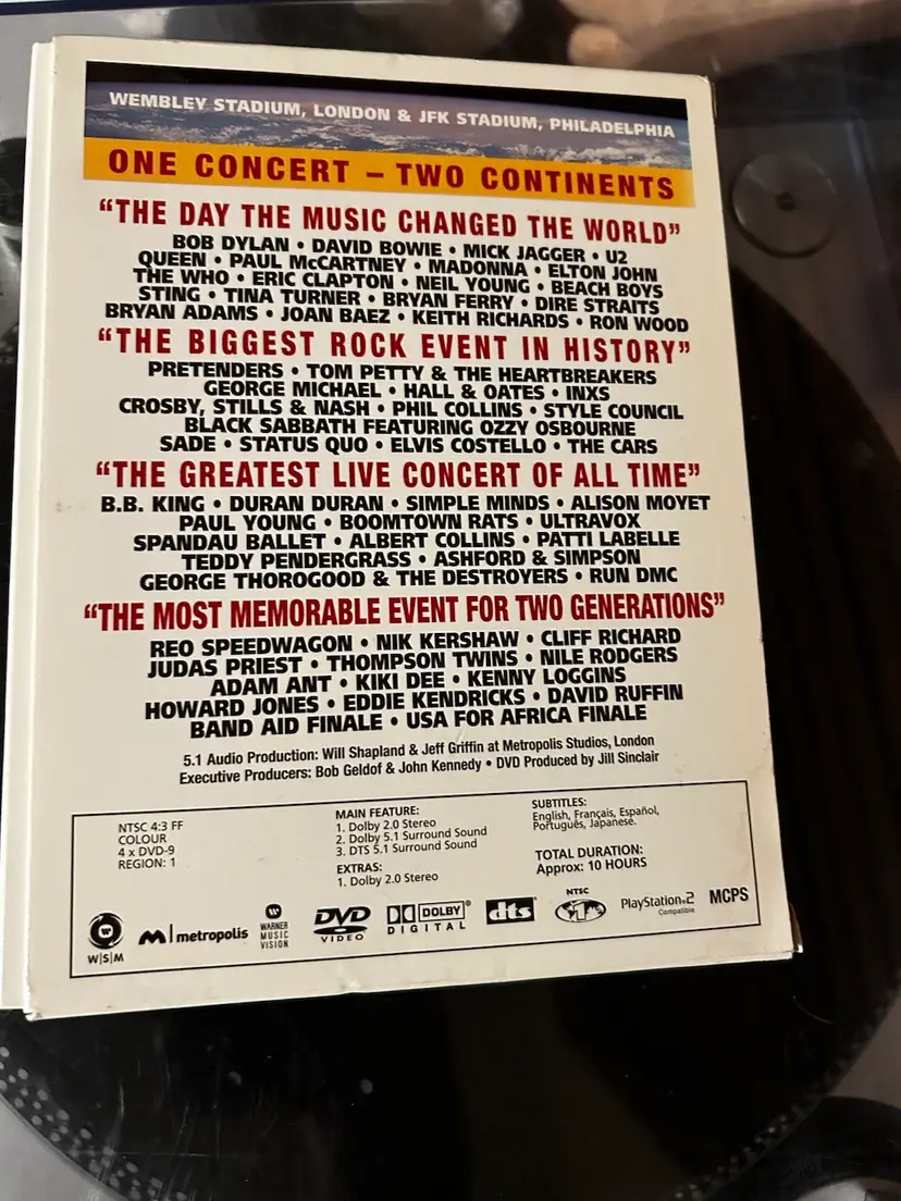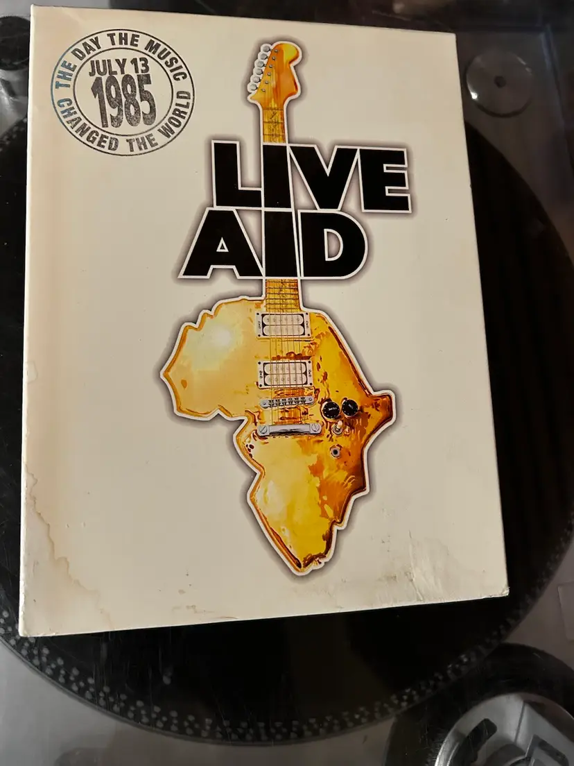Nice shape Live Aid dvd with slight wear to outer cover. disc are pretty pretty pretty mint. my dad set his alarm and woke up every 3-4 hours to change the vcr tapes to record this when it aired in 85. buy this and you can enjoy it much easier.