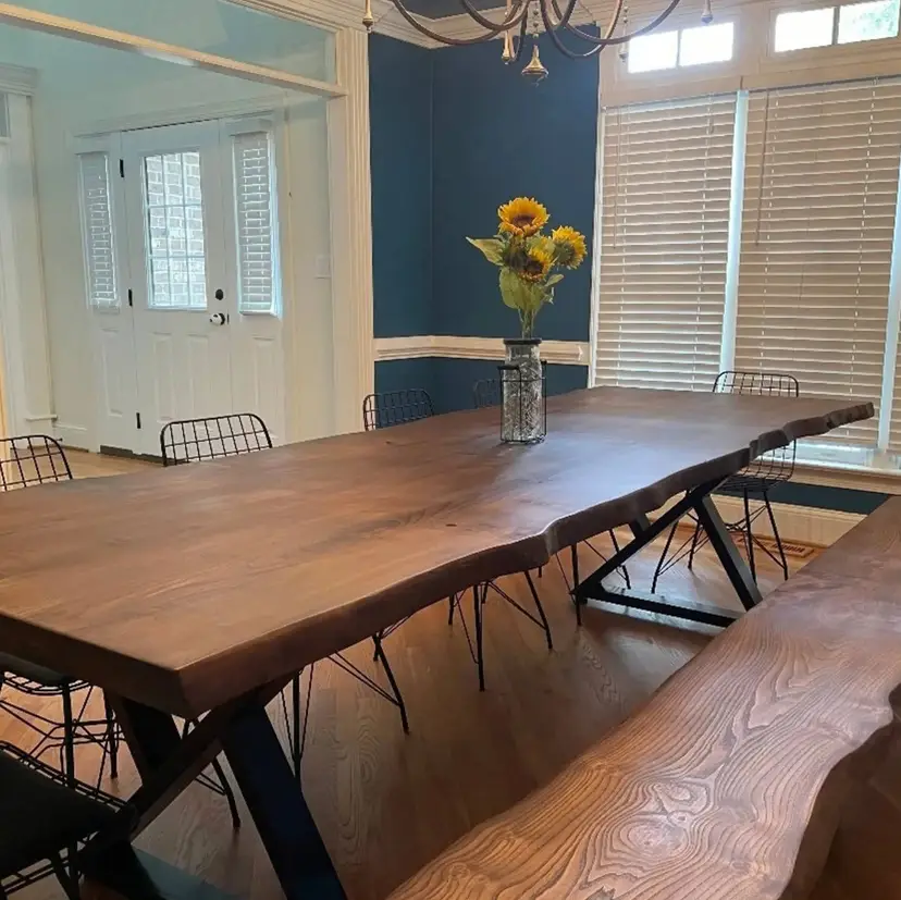 You can use this live edge table, which can be customized with different color and leg options, as a dining table, kitchen table, meeting table, farm table with your family and friends.