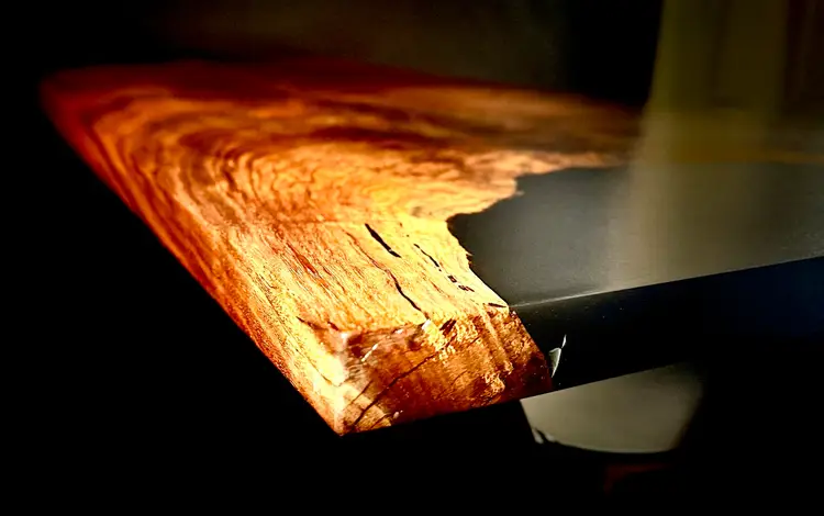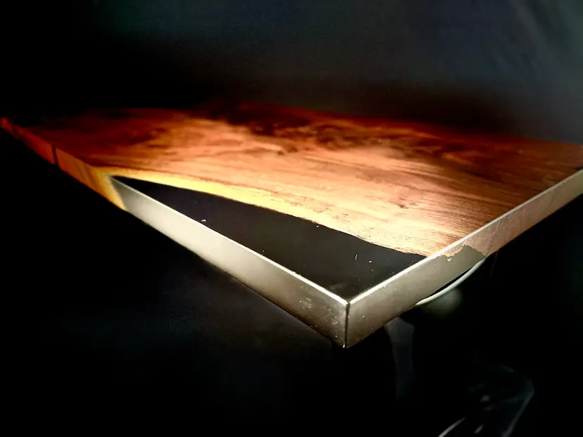 Elevate your space with this stunning live edge walnut table, featuring a sleek resin inlay. Perfect for adding a touch of nature and modern elegance to your home.