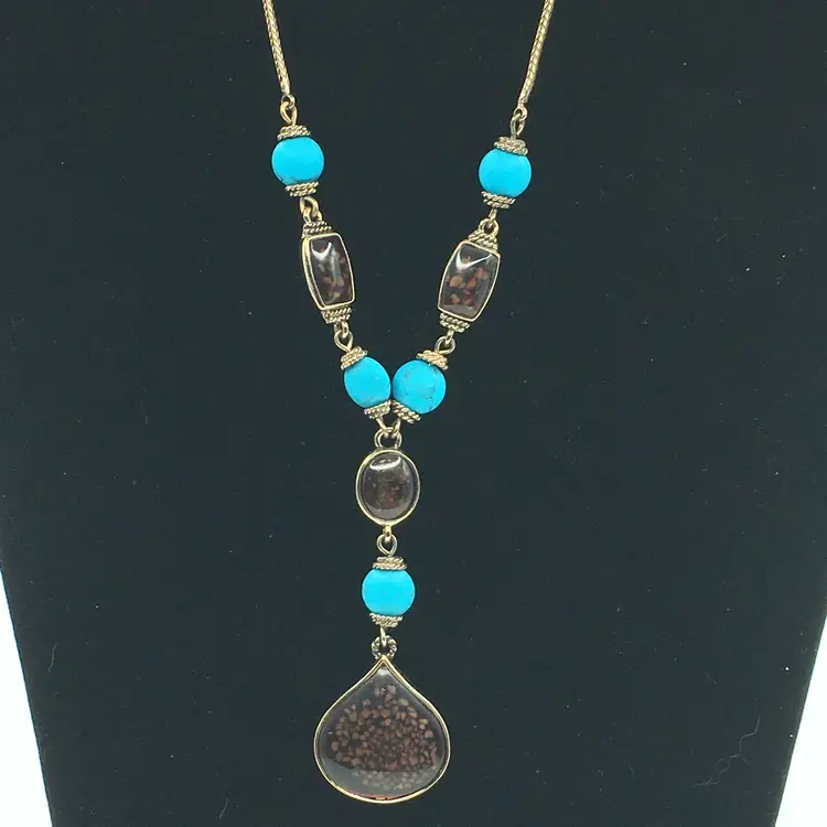 The turquoise color beads make this a beautiful and stand-out necklace