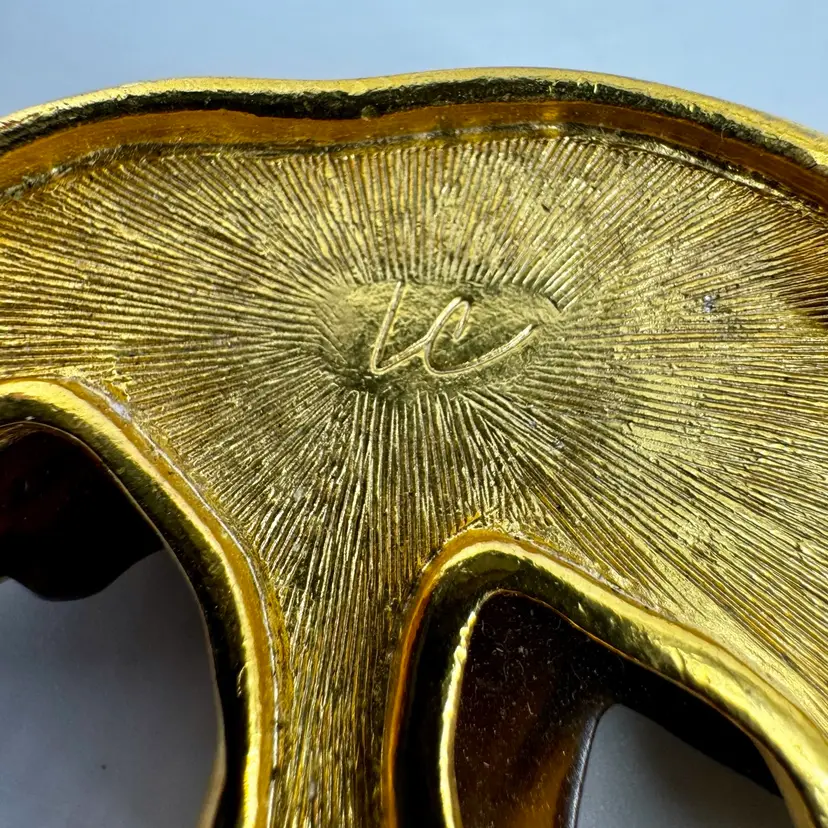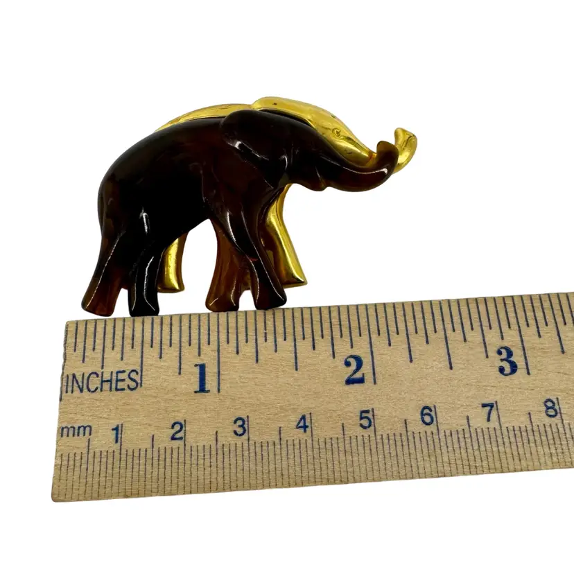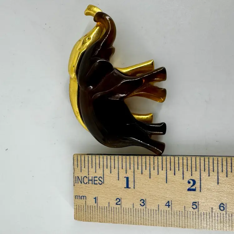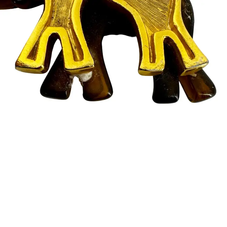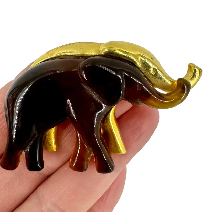 In very good vintage condition. The piece is marked LC for the maker and the clasp is in working order. There is a white spot on the bottom backside leg of the elephant. Please review pictures as part of the description.
