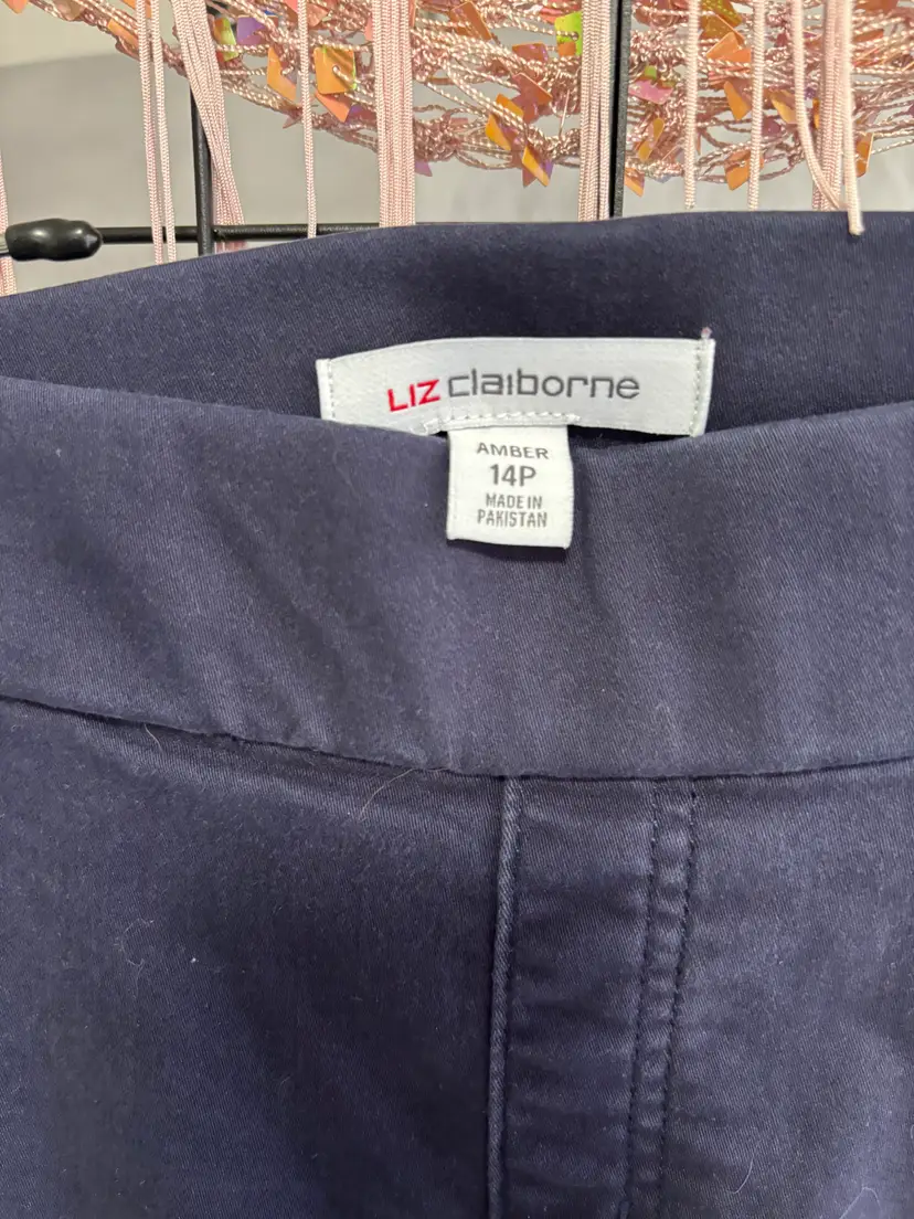 Like new Liz Claiborn ladies sz 14 navy cropped btm pants. Bought for this school year & worn twice - lost weight so my loss is your gain. Comfortable, elastic waist, great to wear.