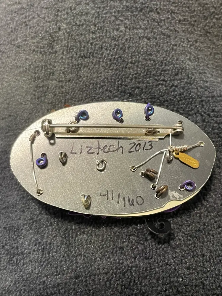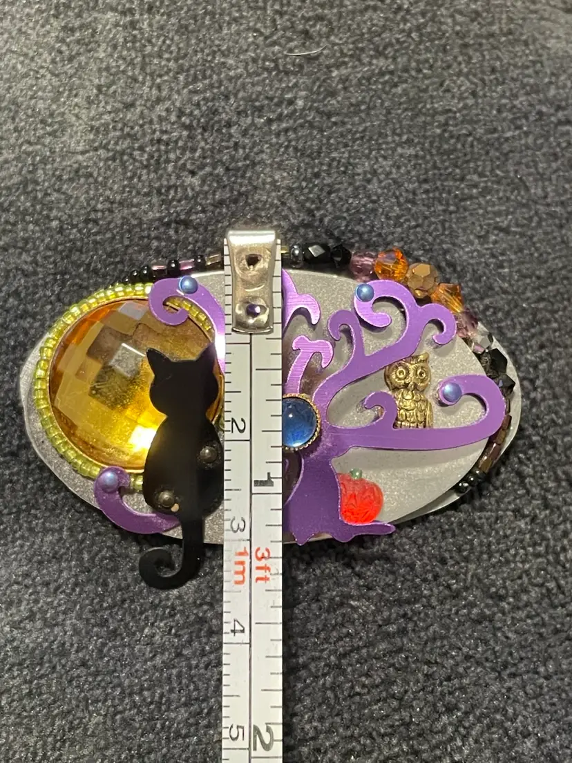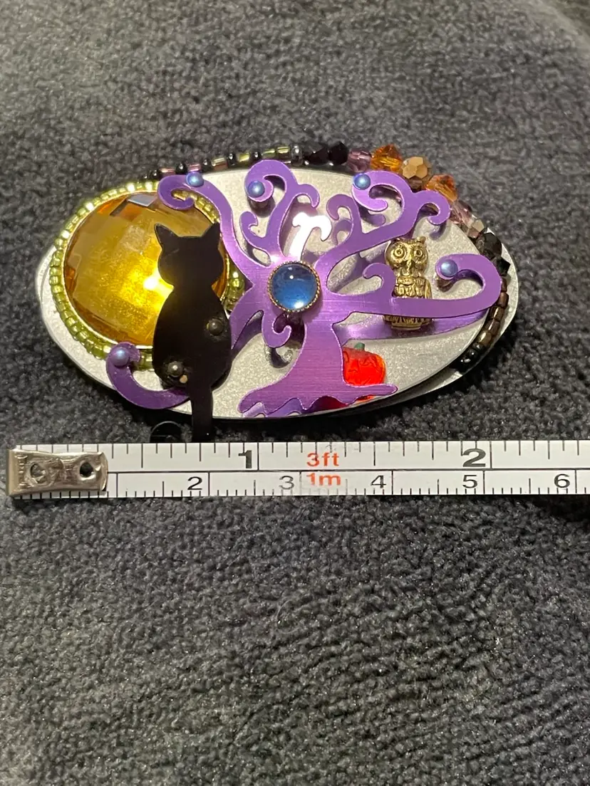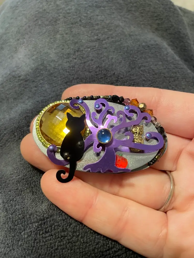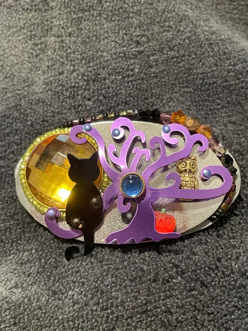 Liztech Halloween Cat on Tree Brooch Pin Signed Mixed Metal Layered 2013 RARE