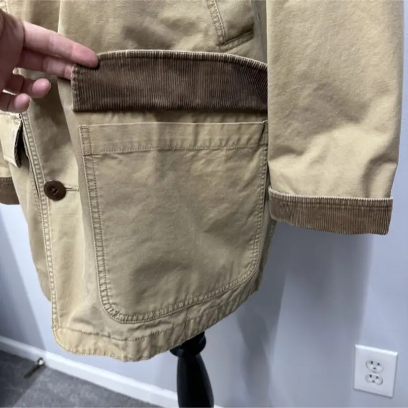 LL Bean Men XL TALL Canvas Barn Chore Coat Flannel Lined Field Jacket Khaki Tan